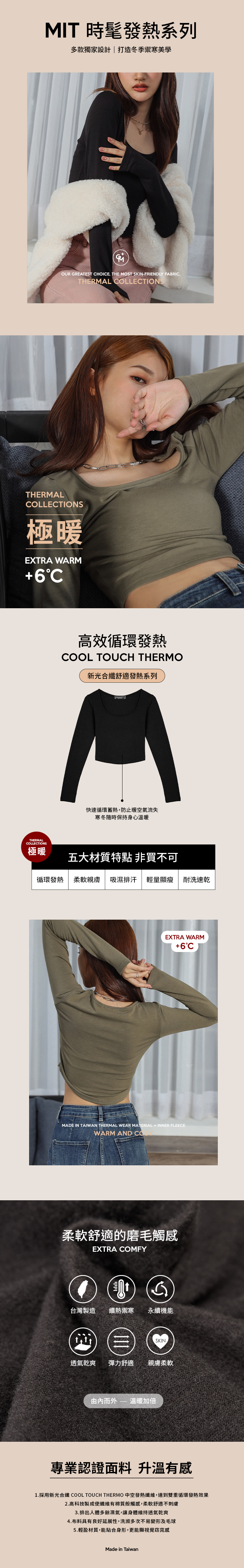 採用新光合纖CoolTouch Thermo 中空發熱纖維,達到雙重循環發熱效果