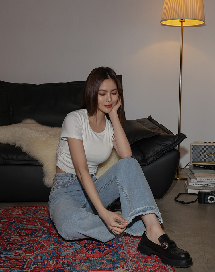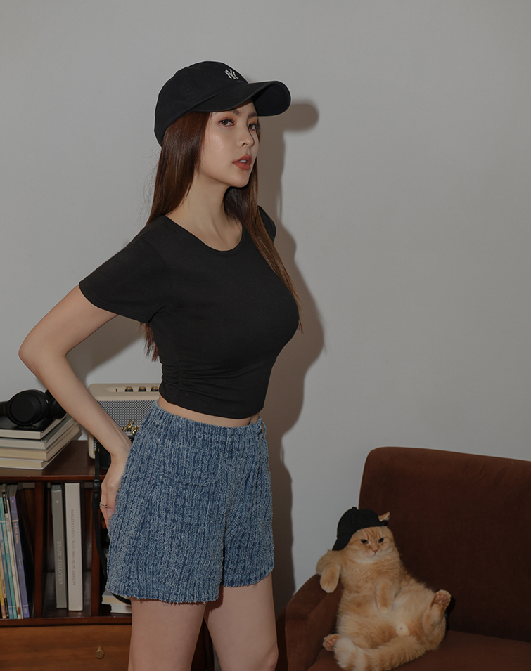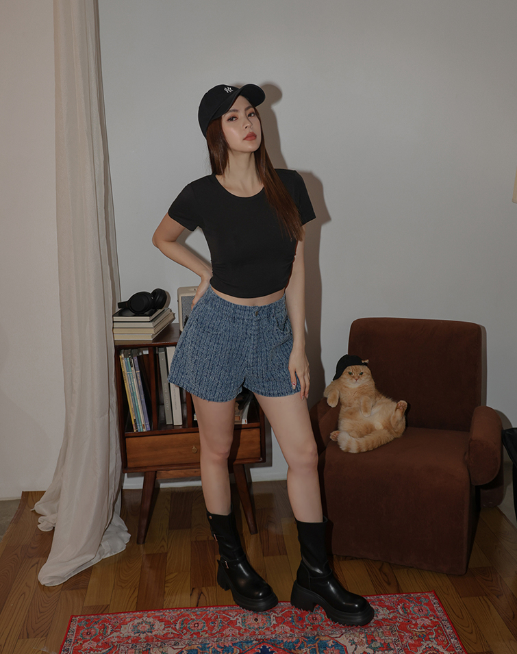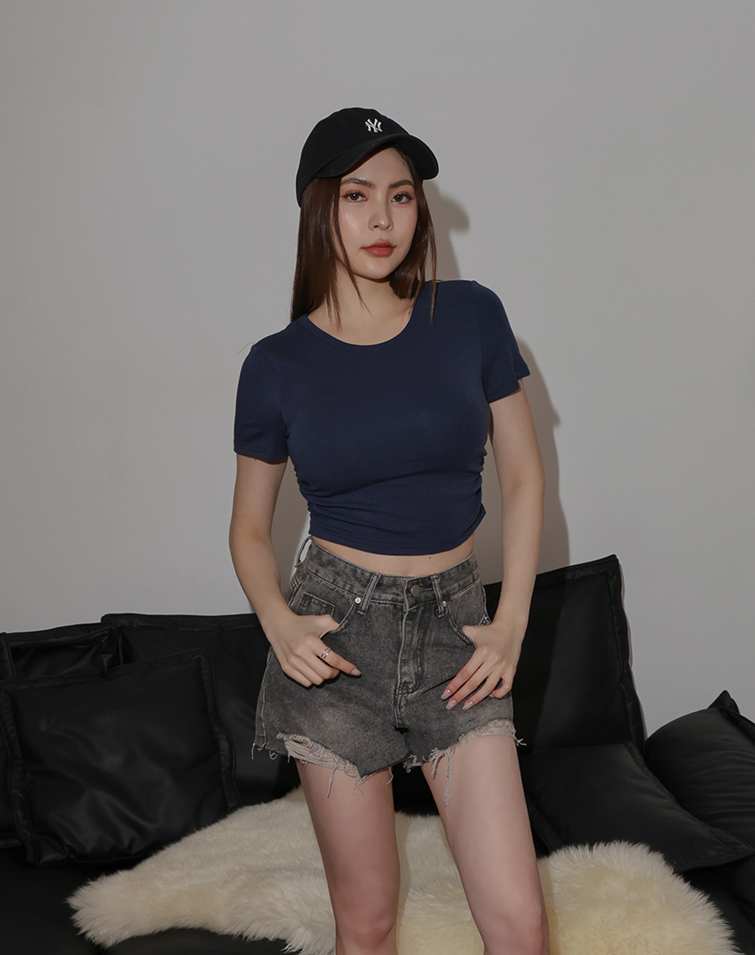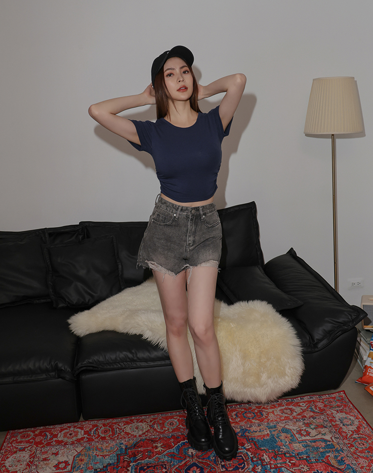 復古刷色抽鬚牛仔短褲