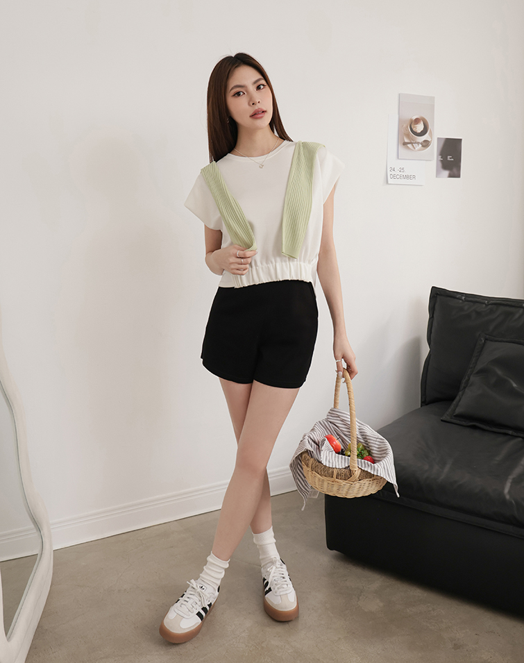 連袖/下擺彈性織帶/前短後長