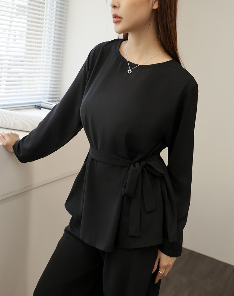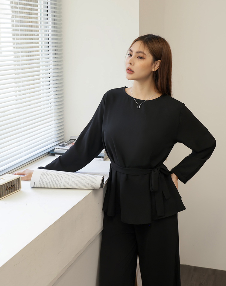 上衣 附綁帶/基礎素面/寬鬆藏肉/可拆搭