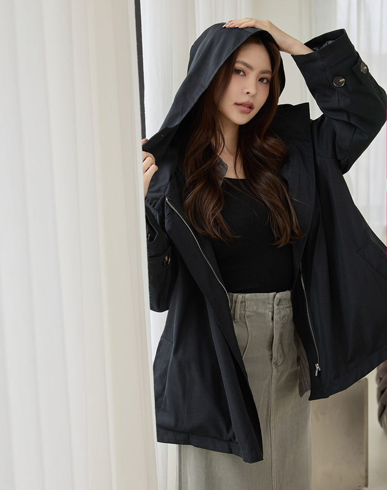 可拆式帽子/兩側口袋/有內襯/手袖調節釦