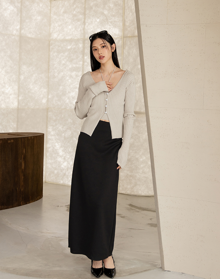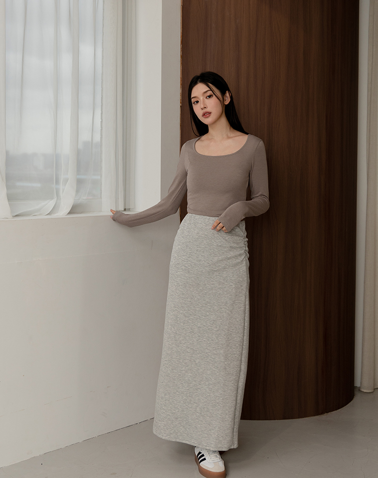 全腰鬆緊/側邊抓皺/後開衩