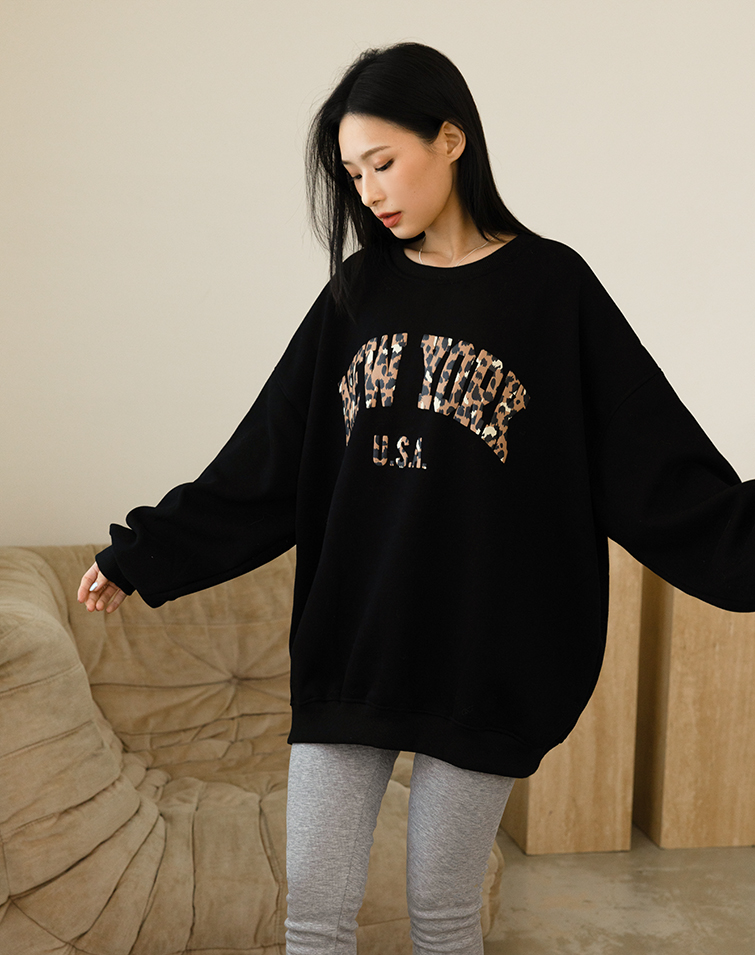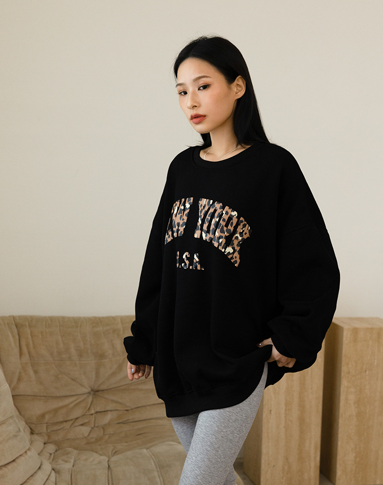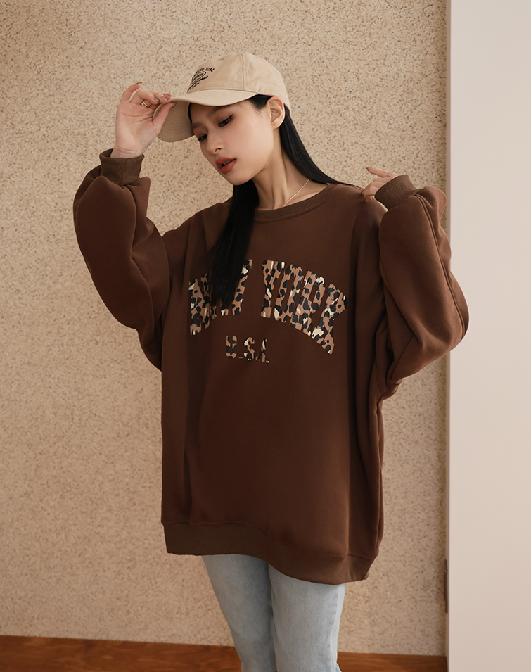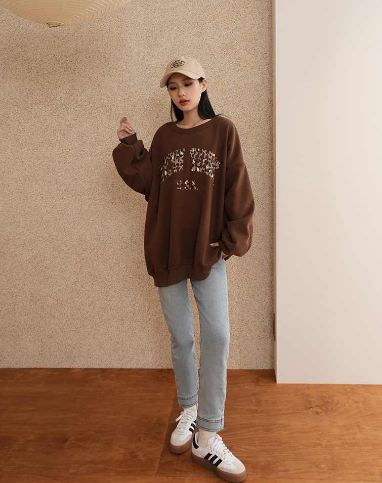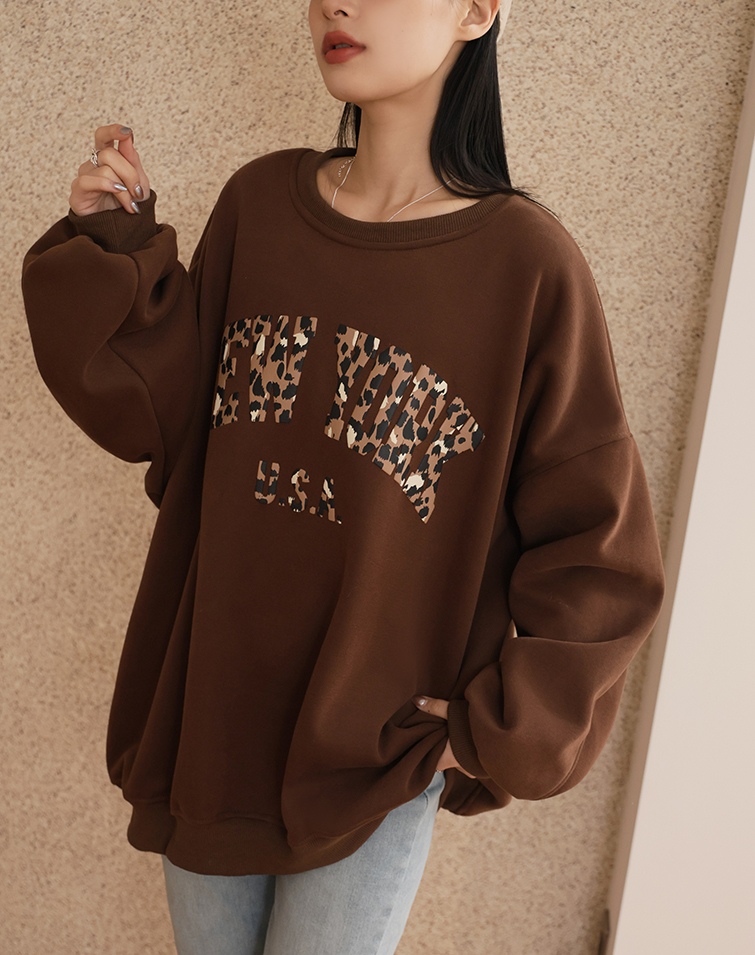 質感豹紋/寬鬆藏肉/內裏細絨毛
