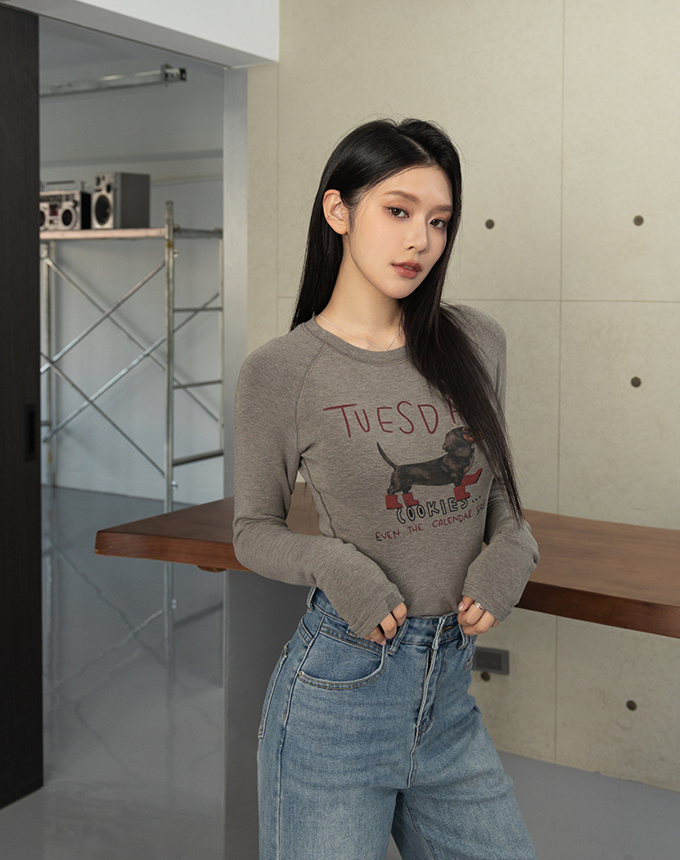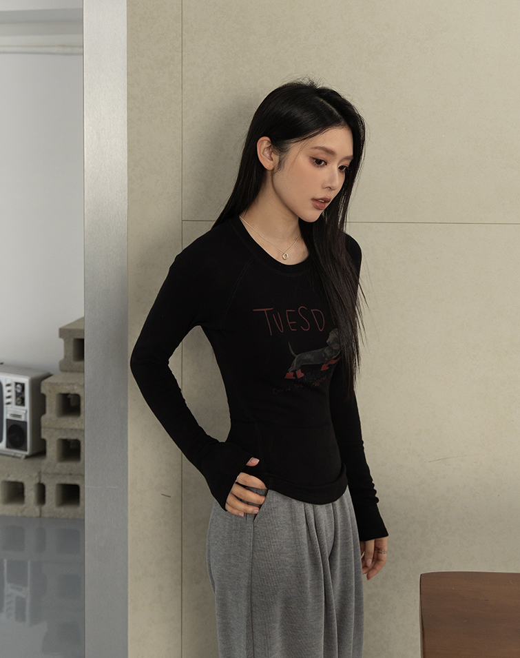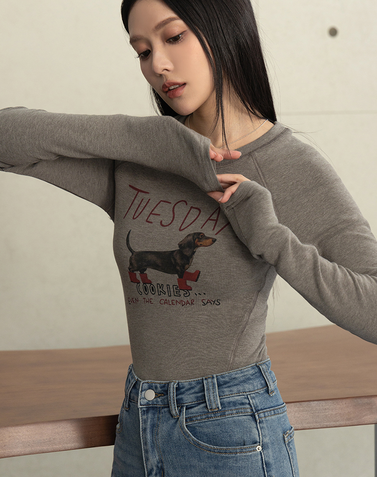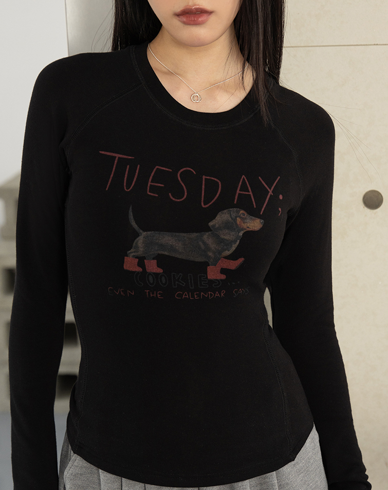 臘腸狗狗修身剪裁長袖上衣