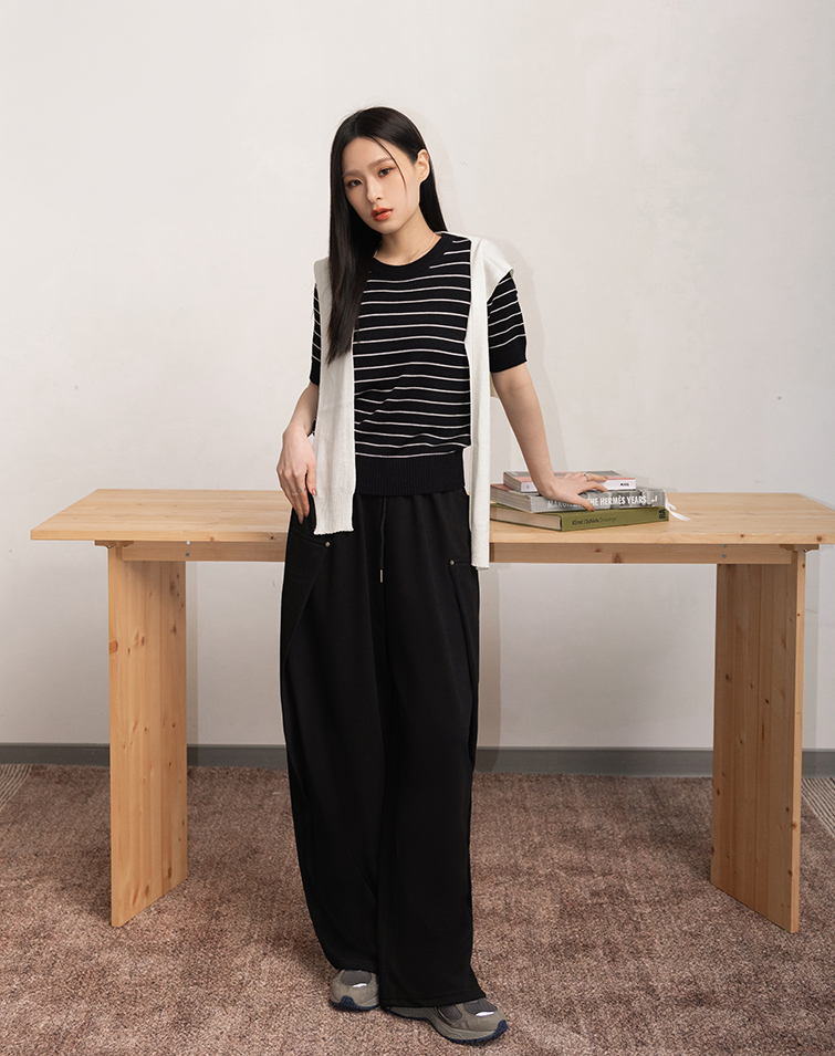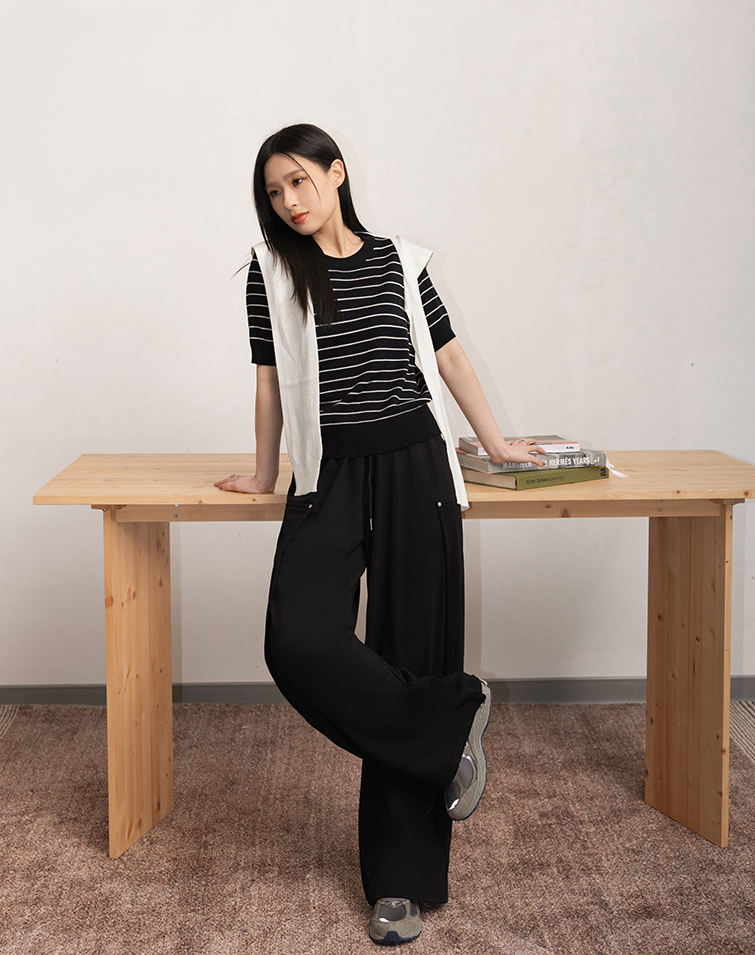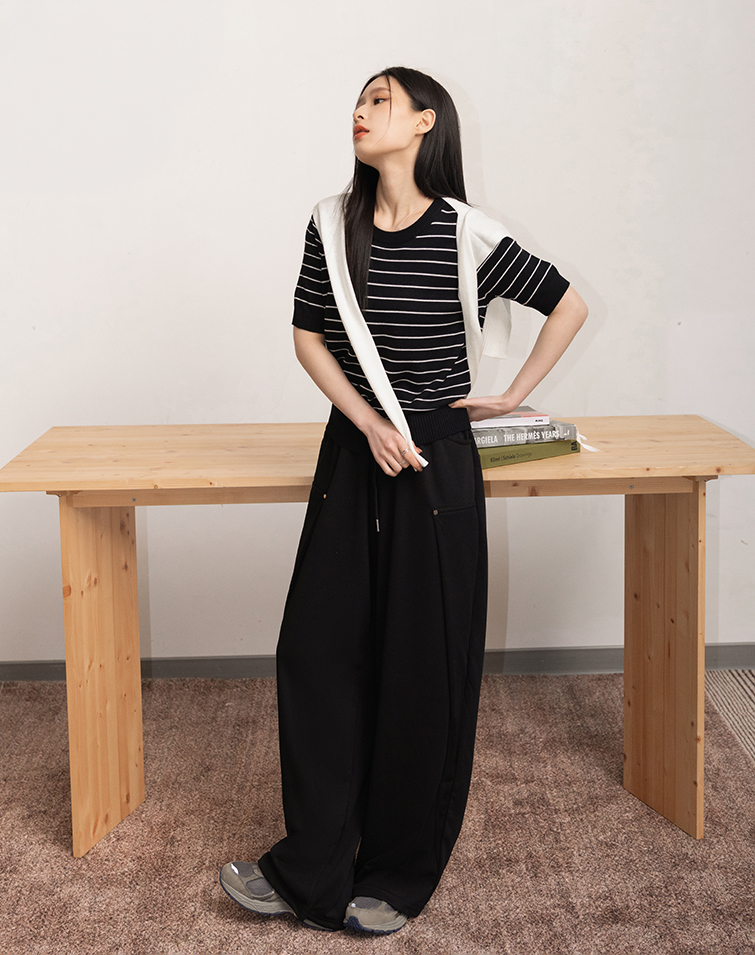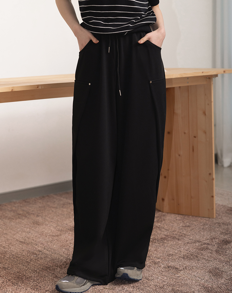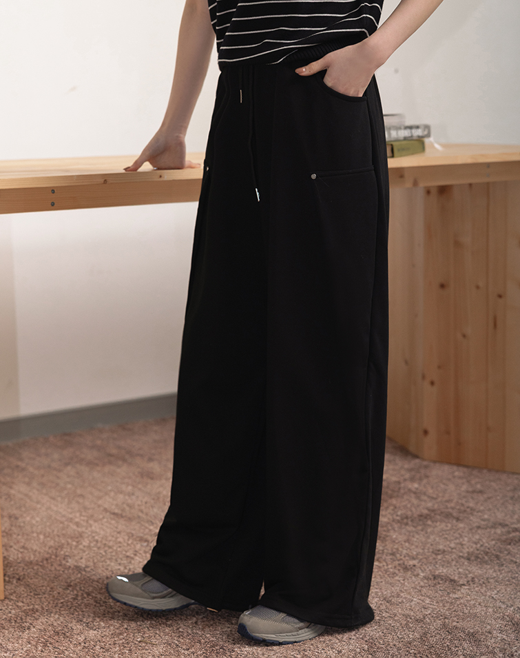 全腰鬆緊/兩側口袋/顯瘦藏肉/褲管抽繩