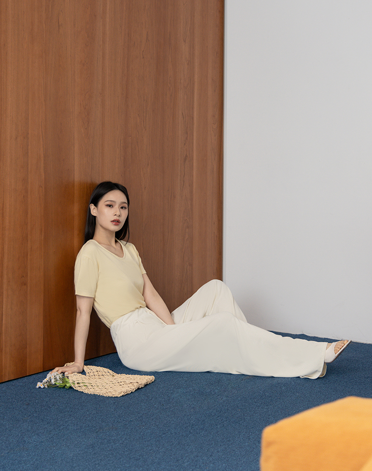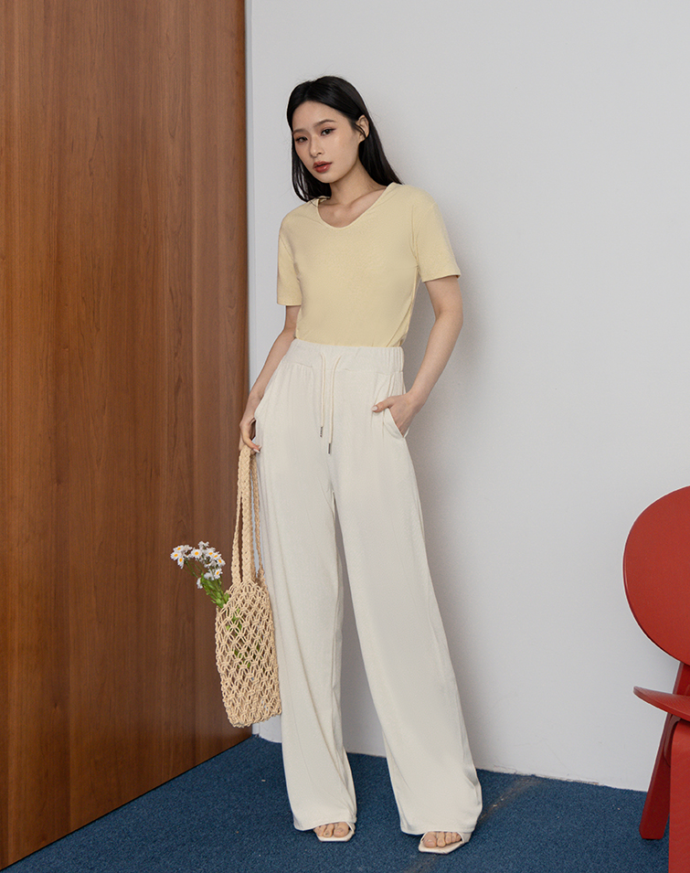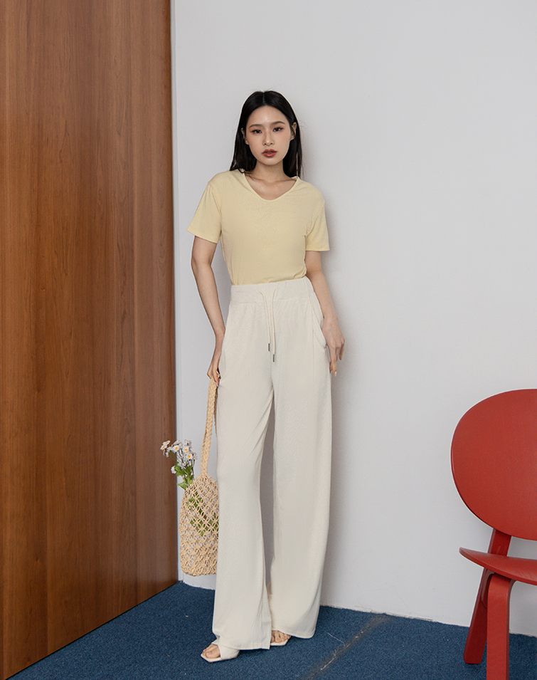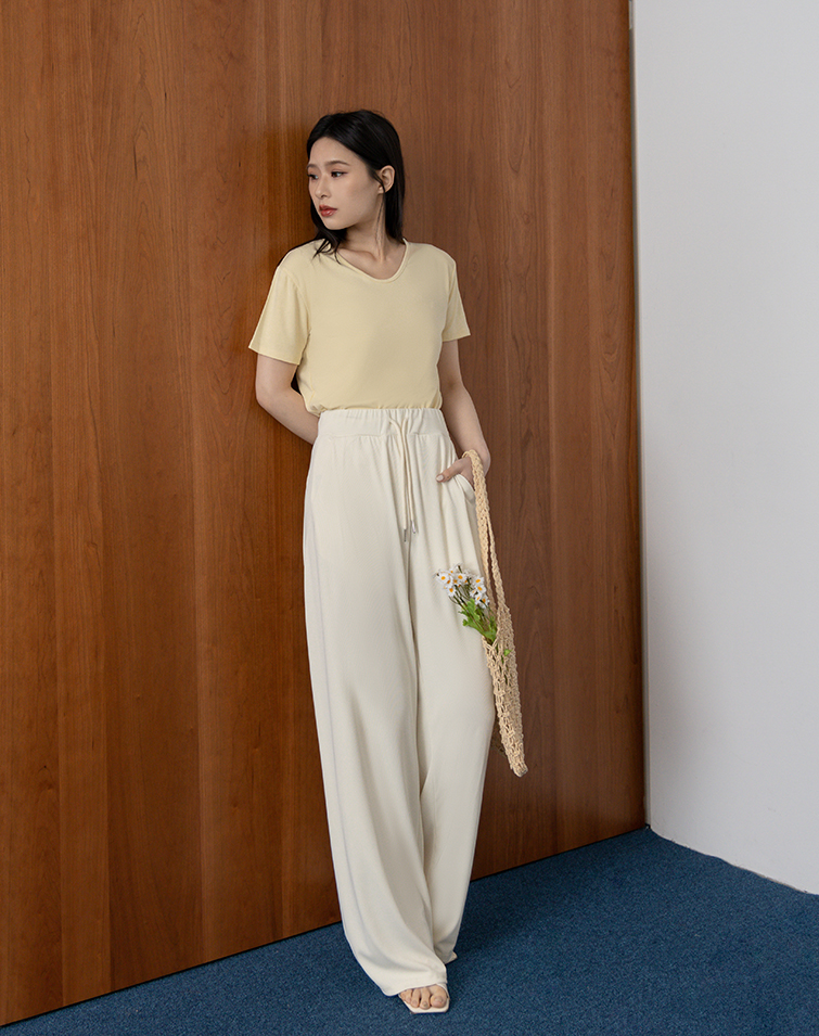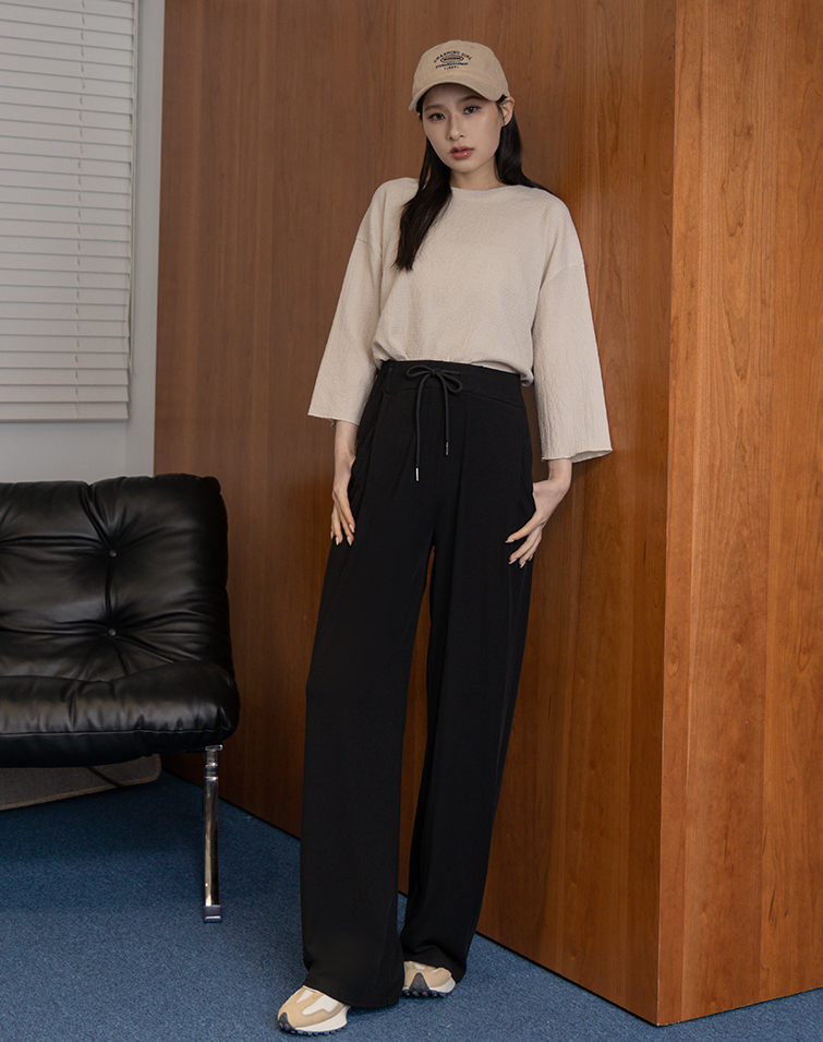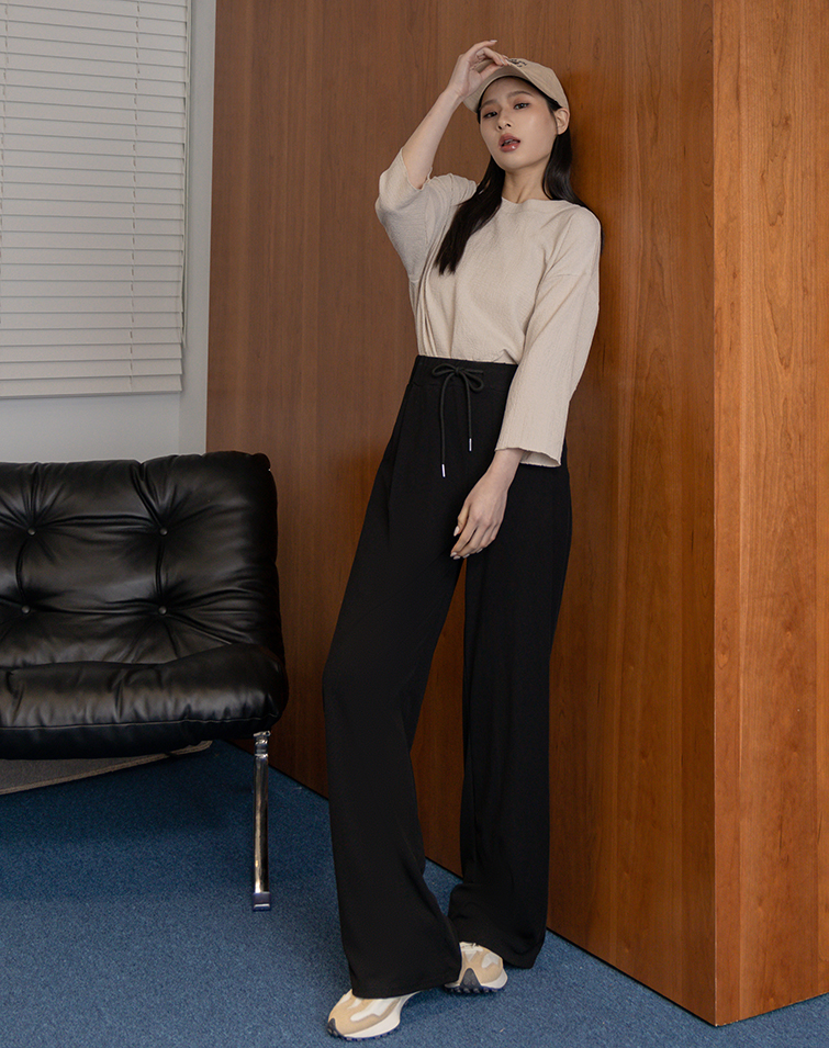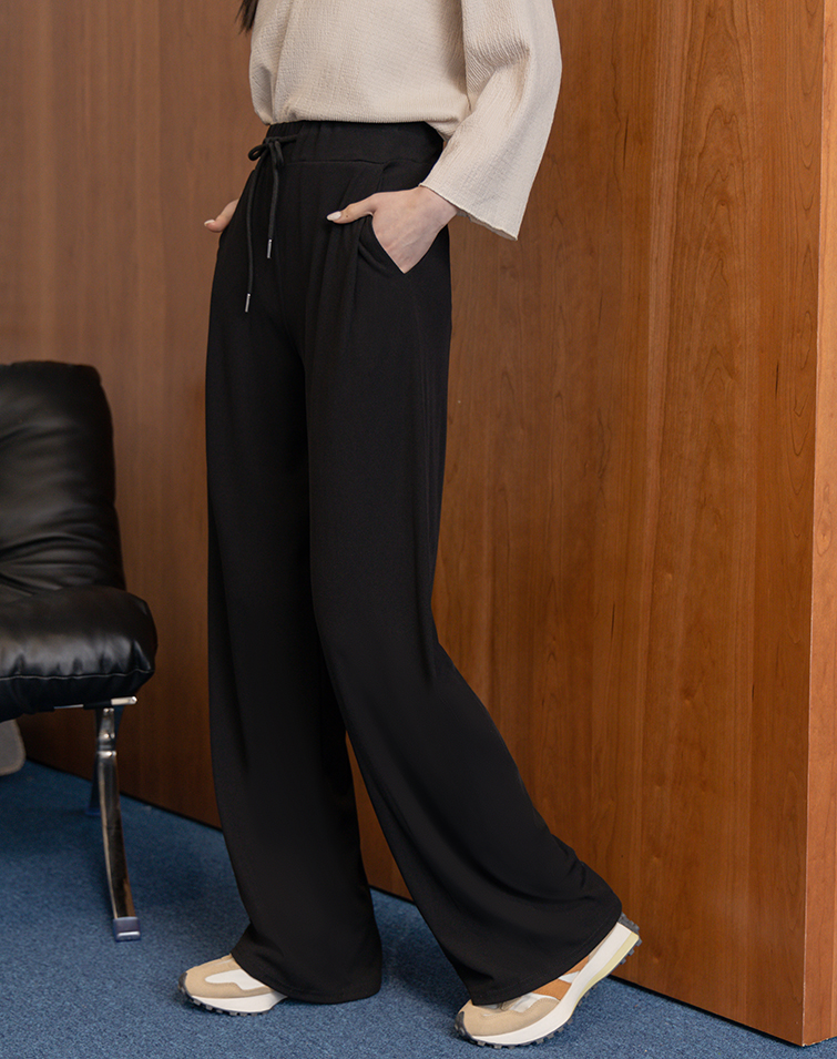 慵懶感羅紋綁腰長褲