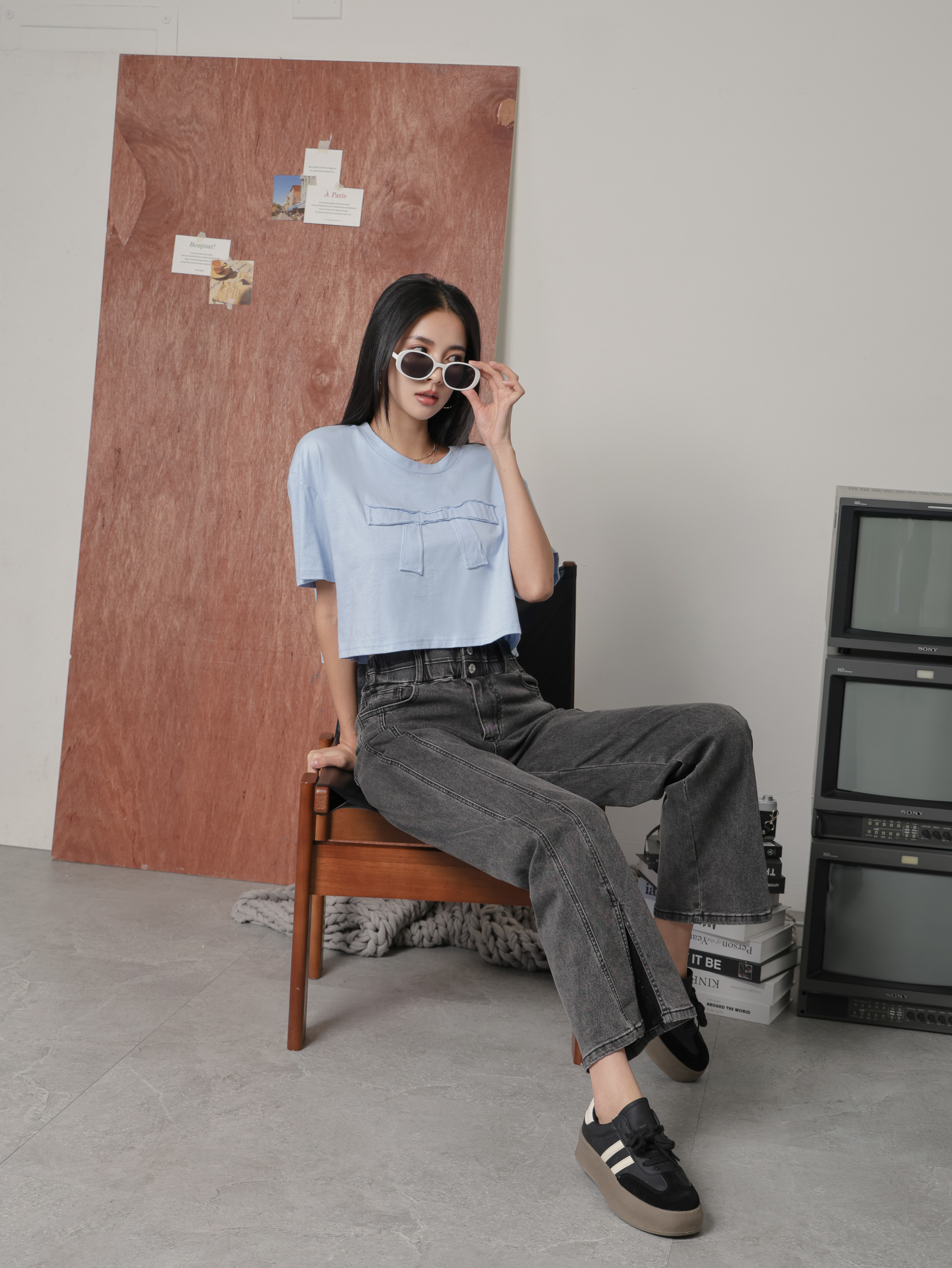 小腹掰掰! 高腰雙釦顯瘦牛仔寬褲
