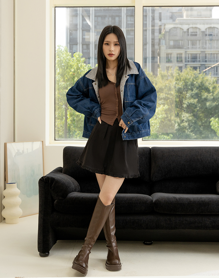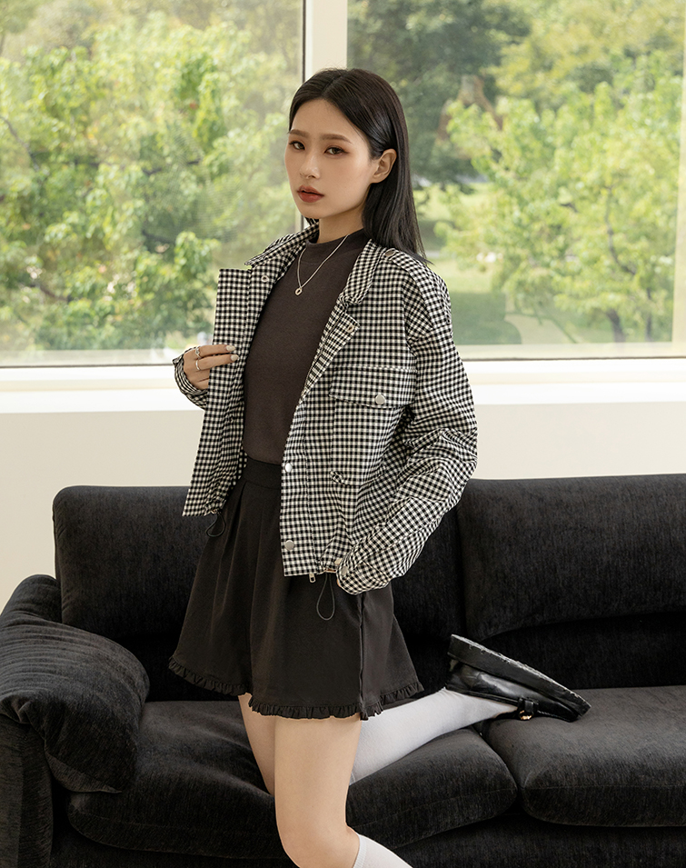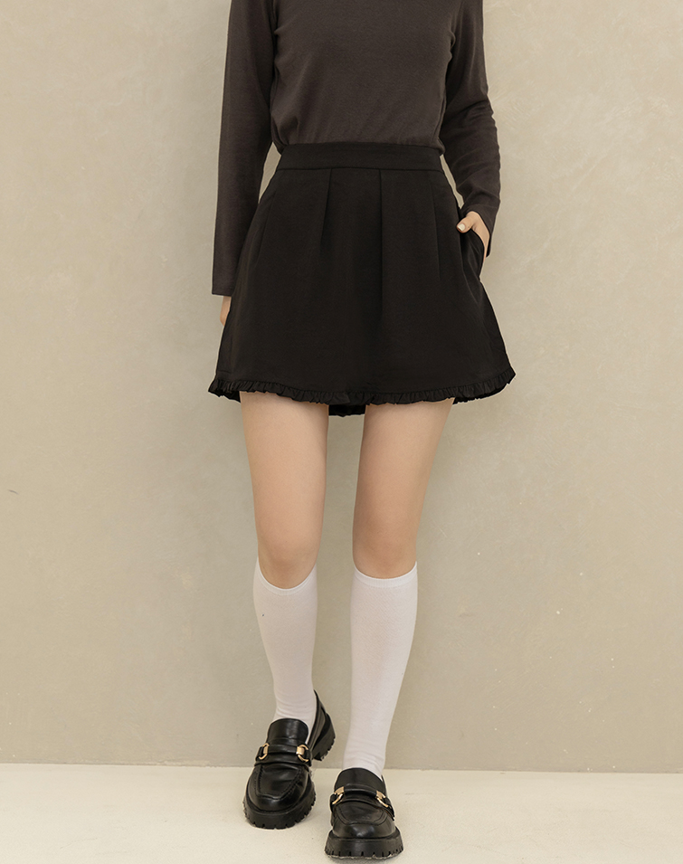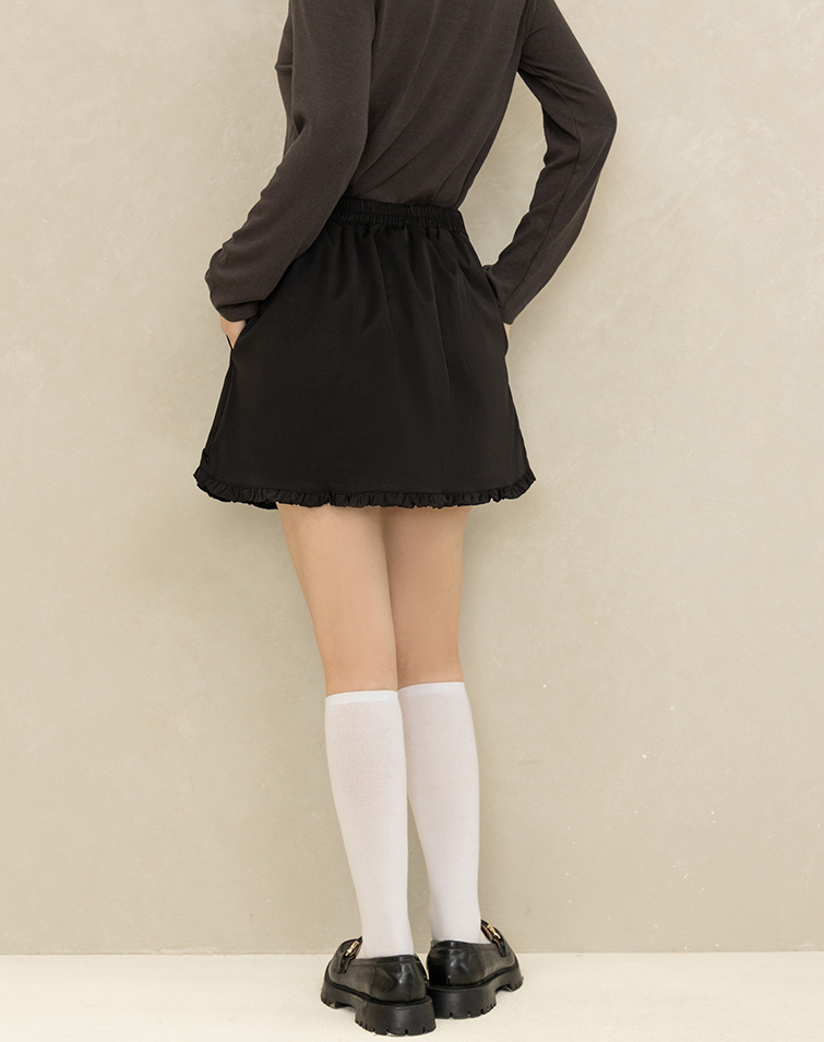 後腰鬆緊/兩側口袋/顯瘦壓褶