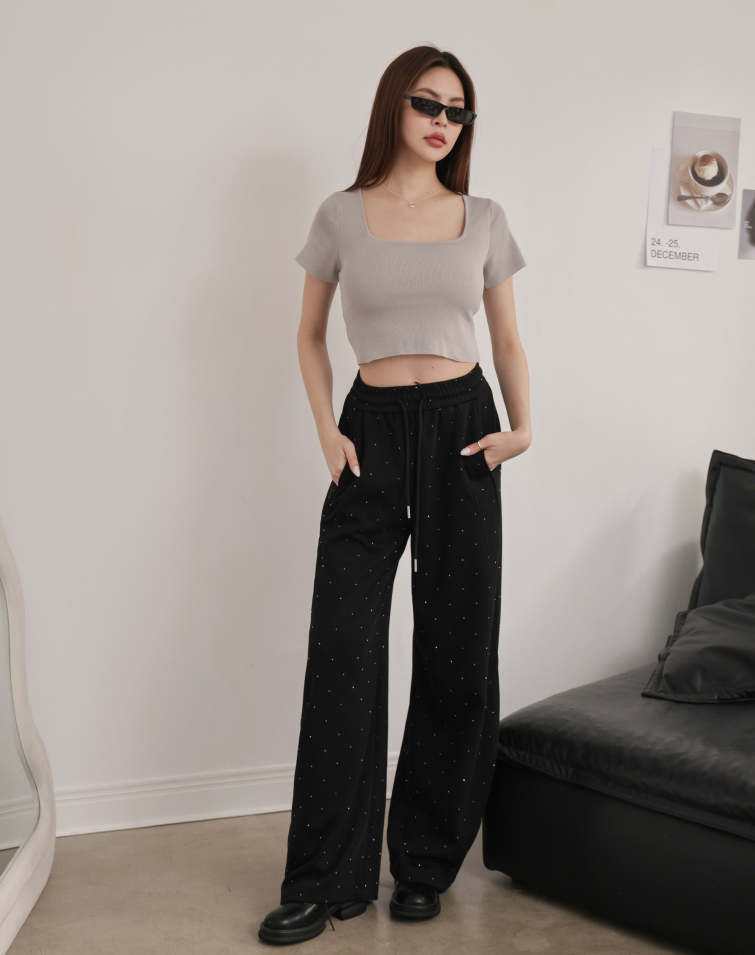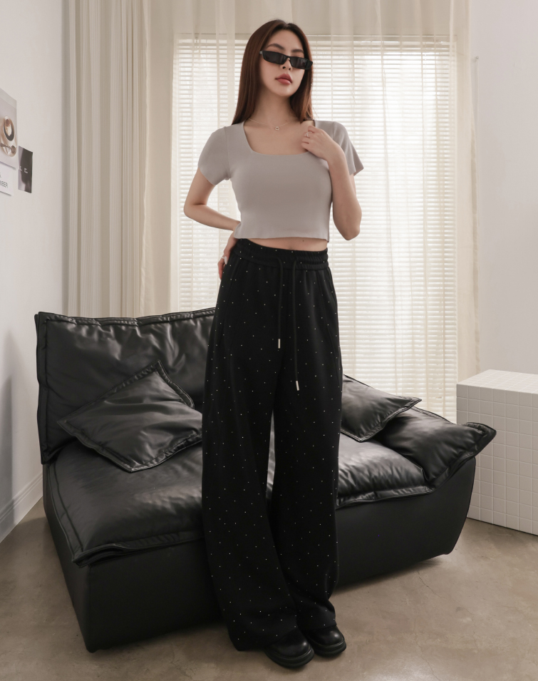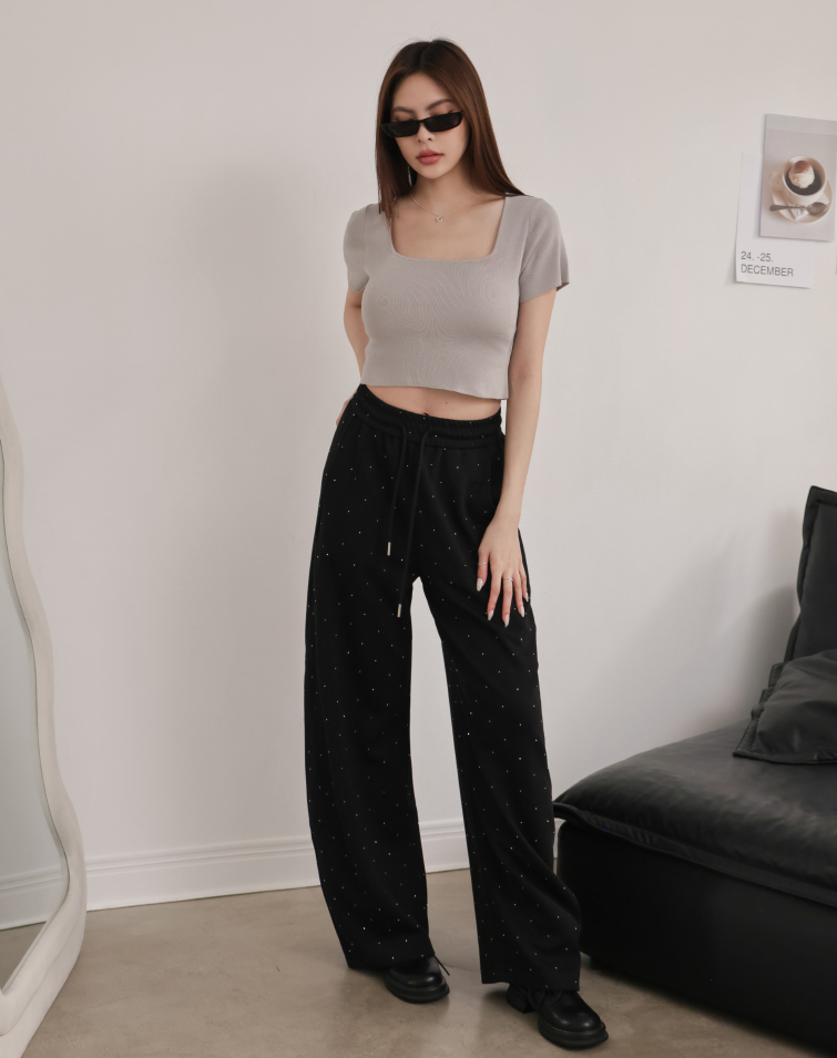 全腰鬆緊/寬鬆藏肉/質感細鑽