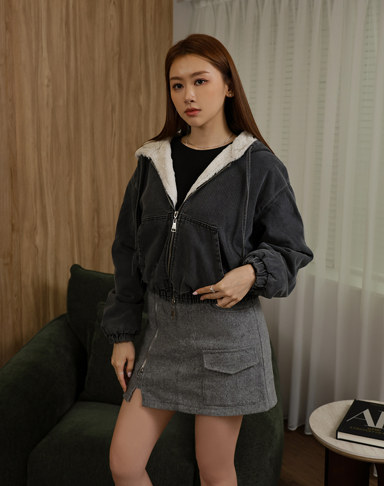 內層柔軟毛毛/兩側口袋/基礎百搭