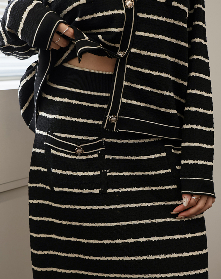 上衣 排釦/兩側口袋/顯瘦橫條/可拆搭