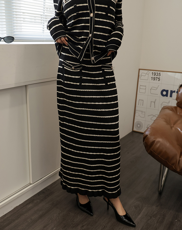 下身 全腰鬆緊/兩側口袋/顯瘦橫條/可拆搭