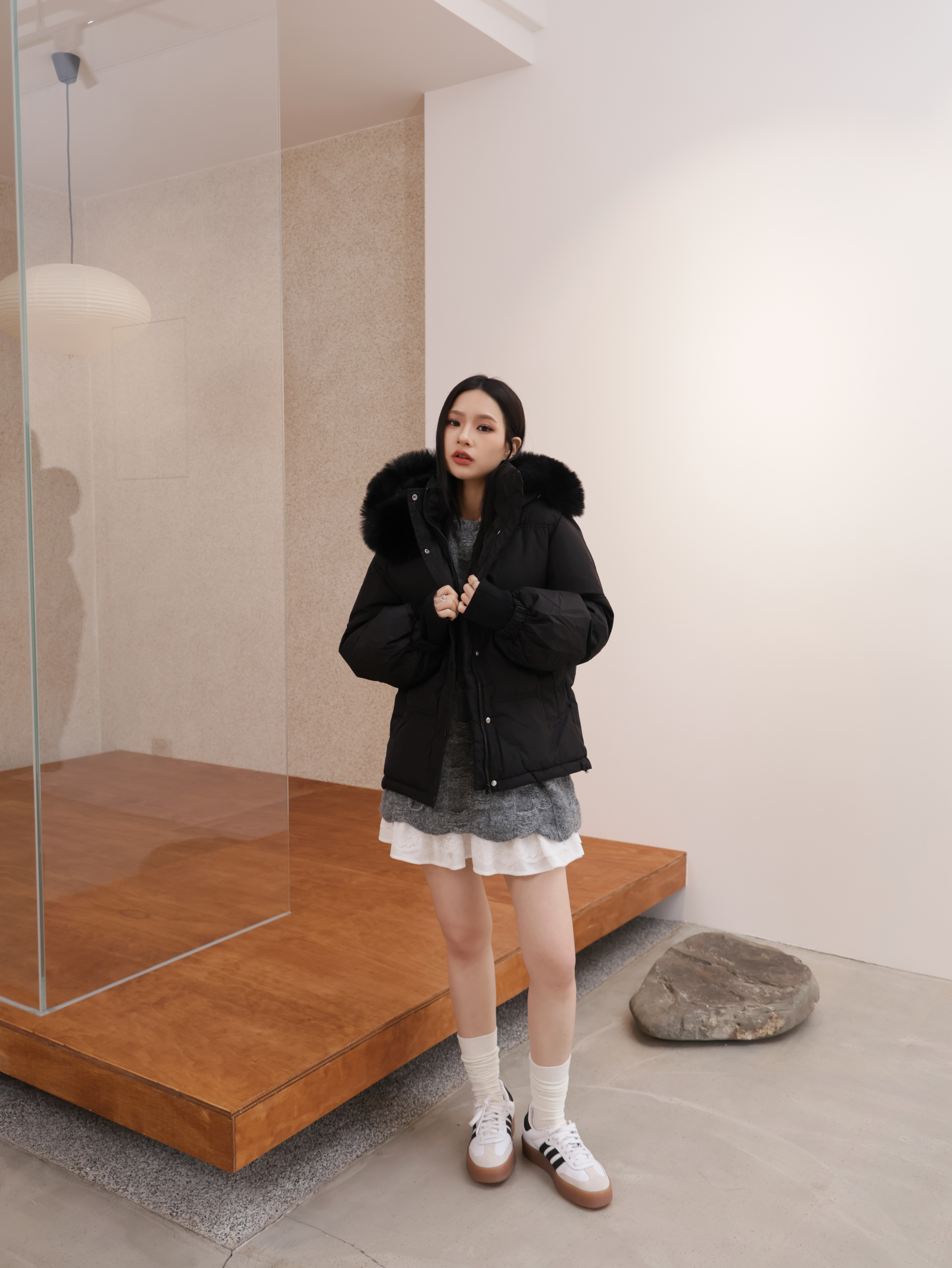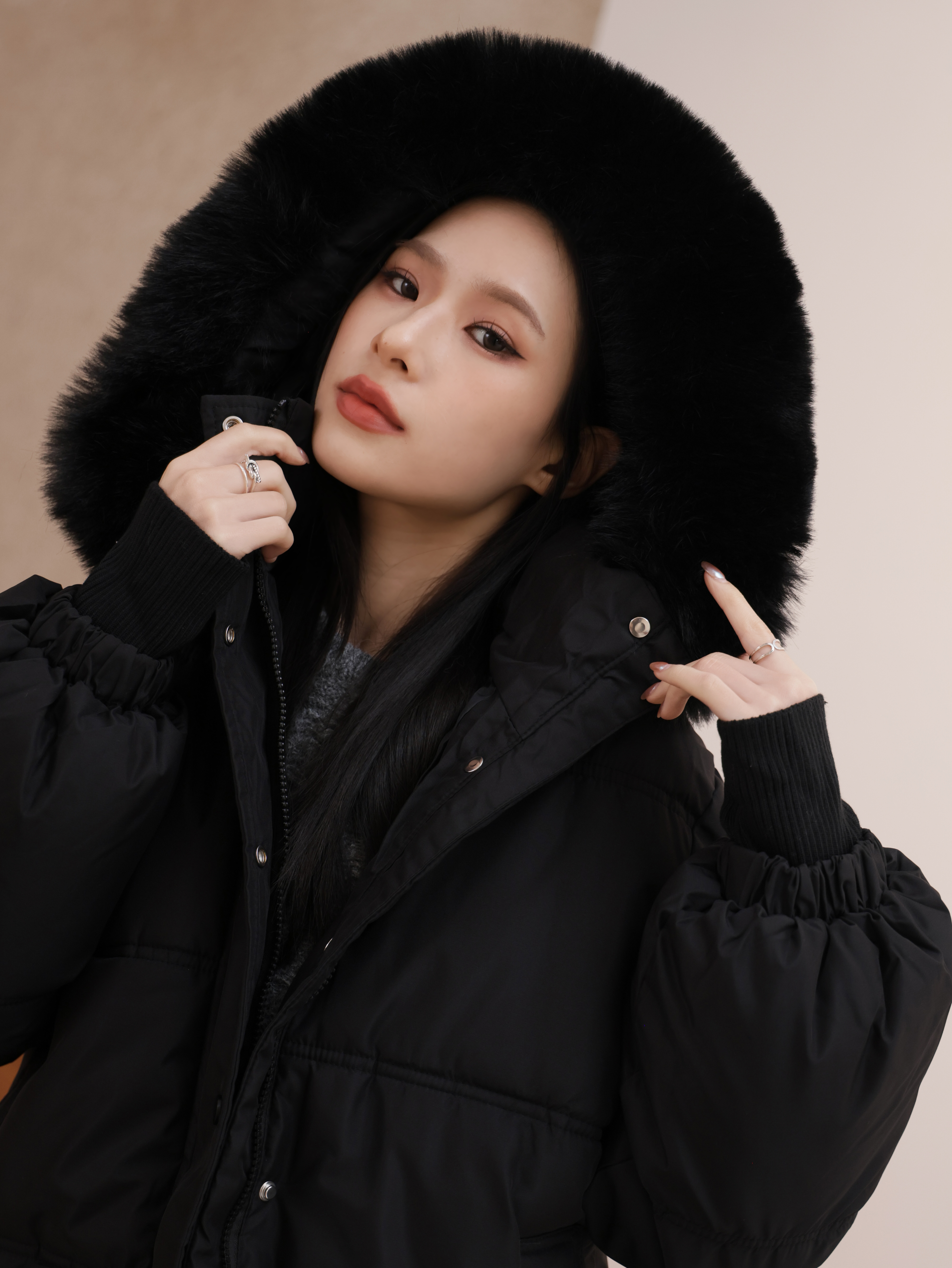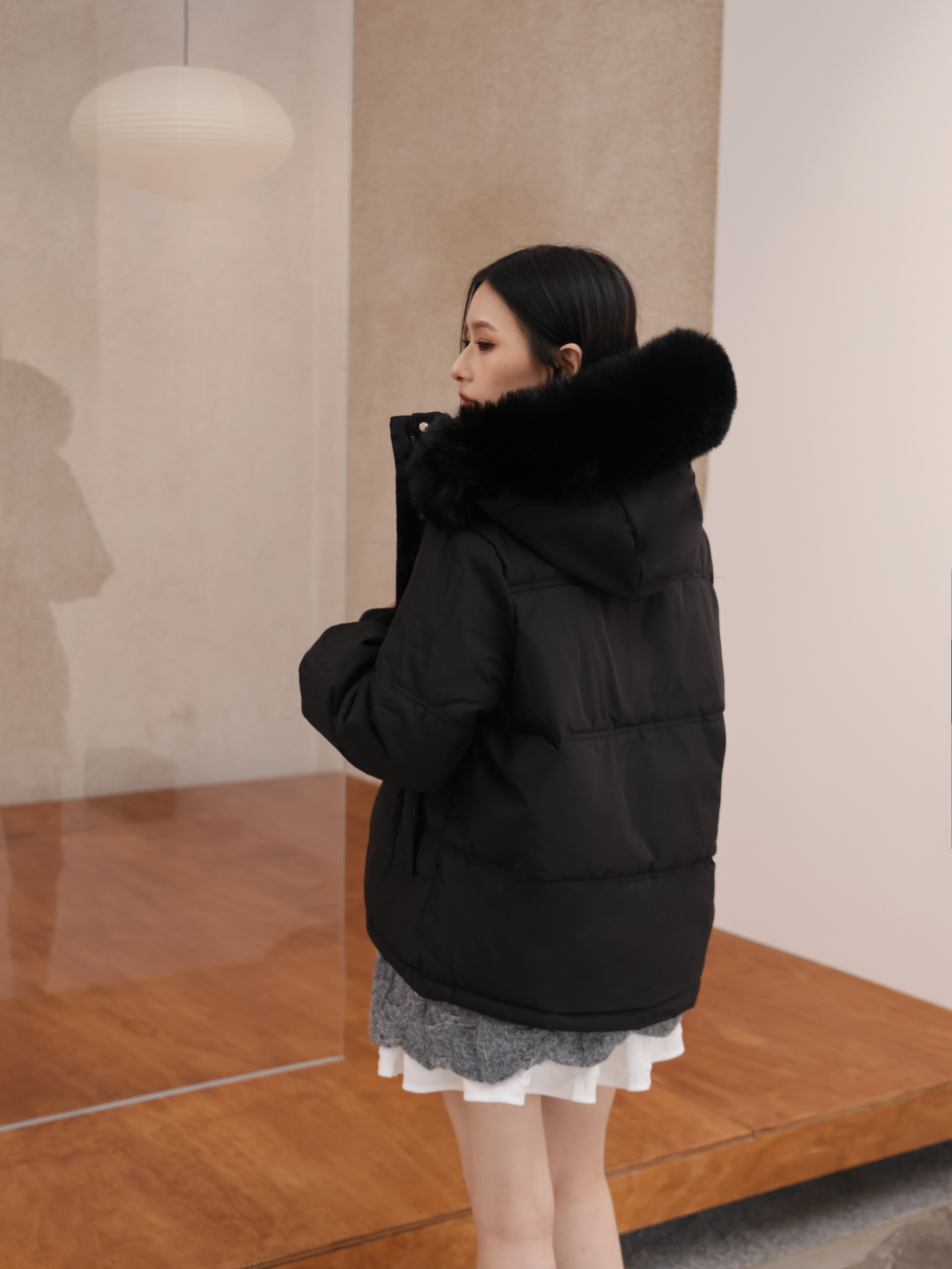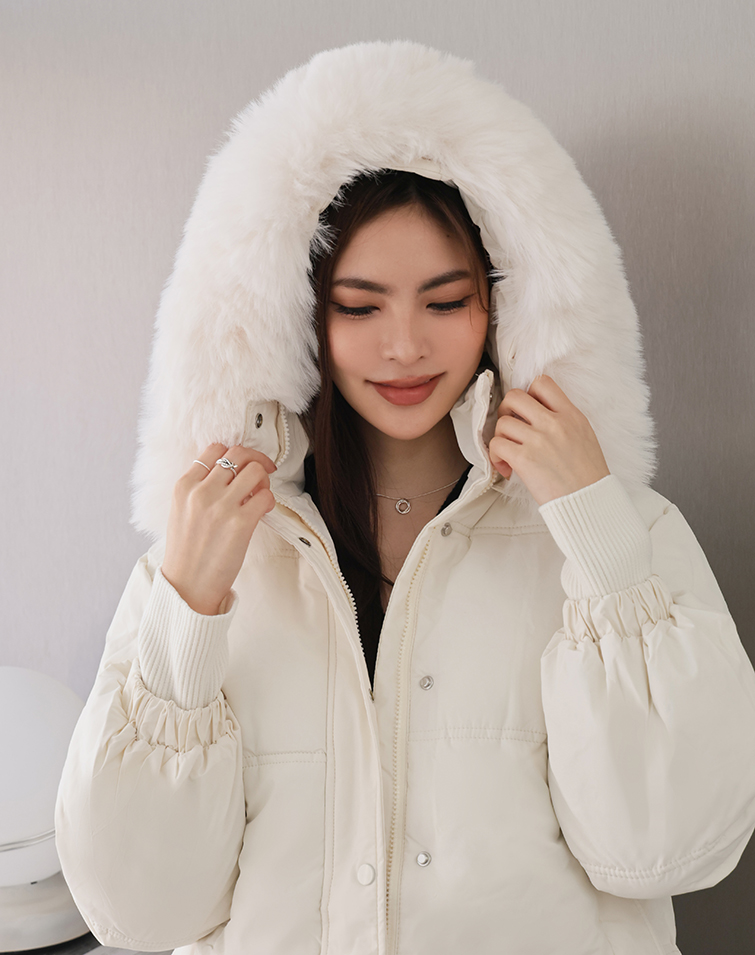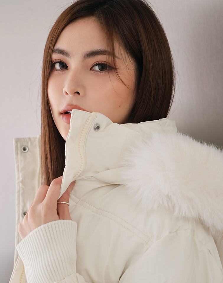 毛毛可拆/有內襯/下襬抽繩/兩側口袋