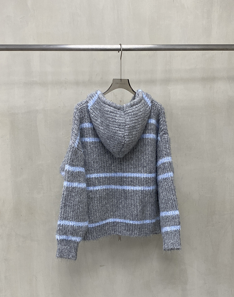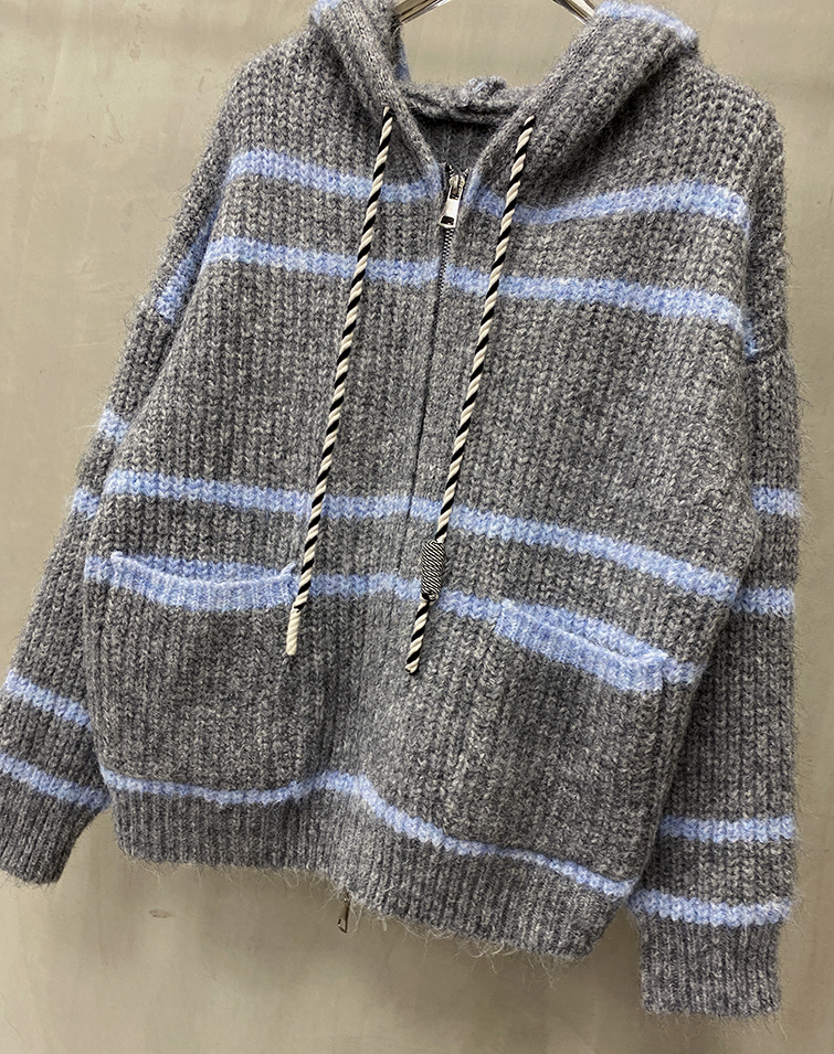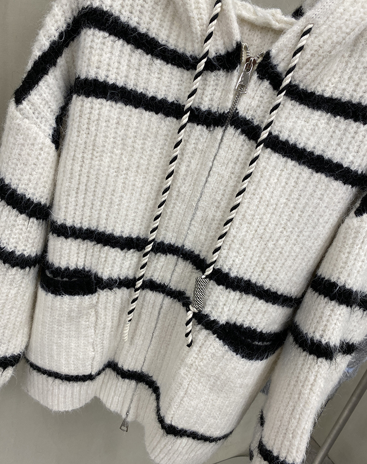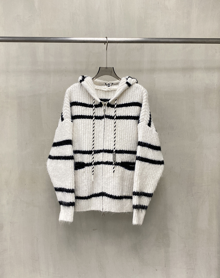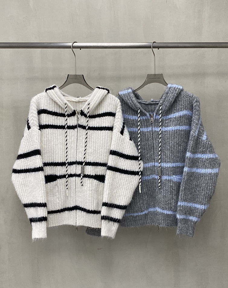 顯瘦橫條/兩側口袋/雙向拉鍊