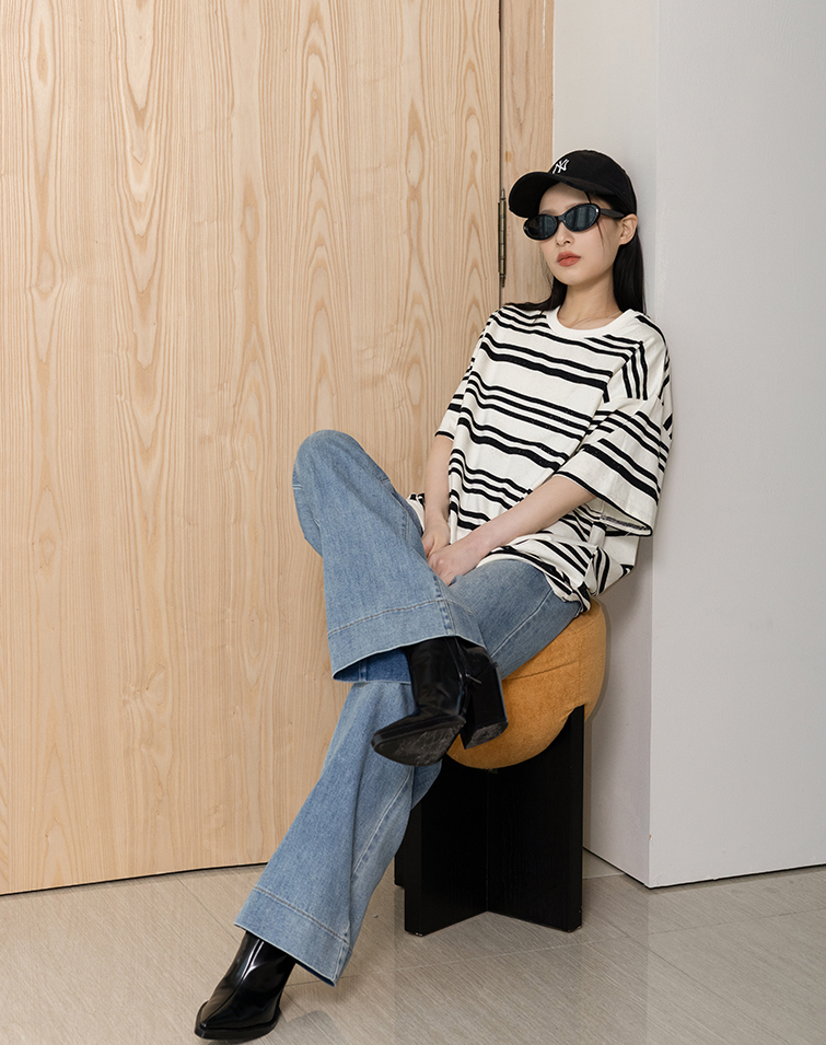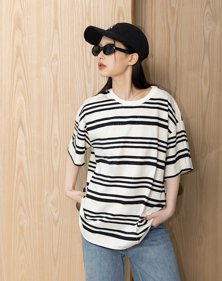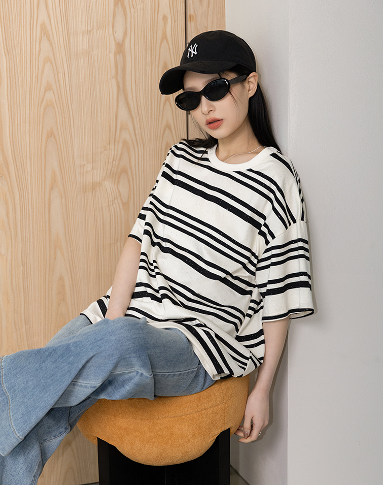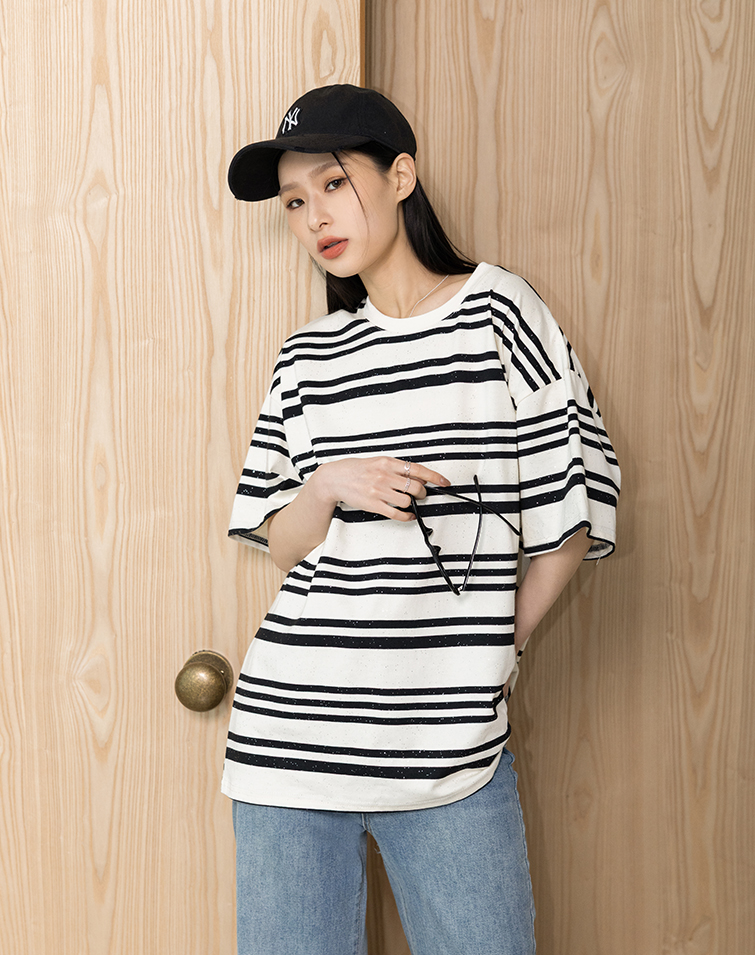 寬鬆藏肉/特殊光點造型/顯瘦橫條