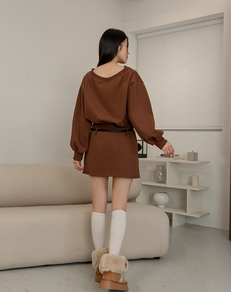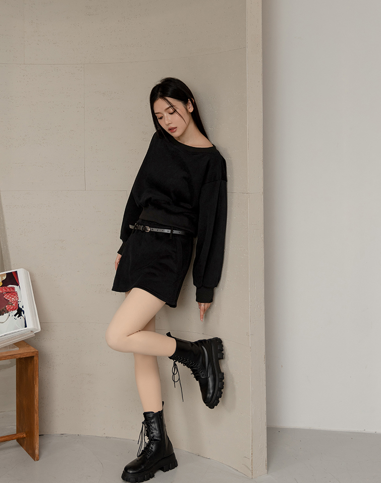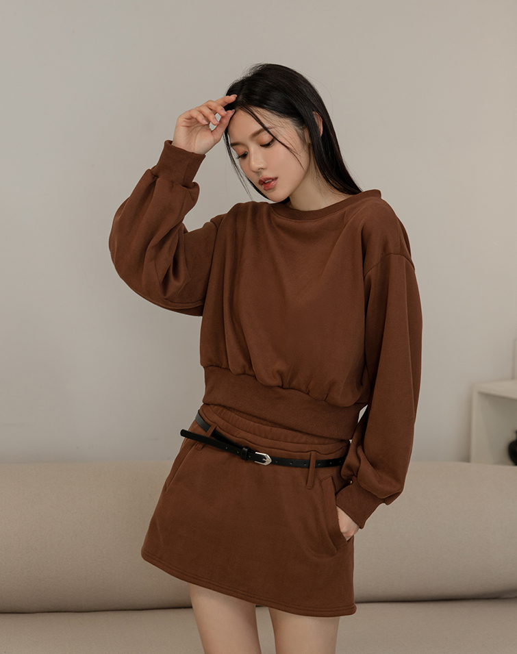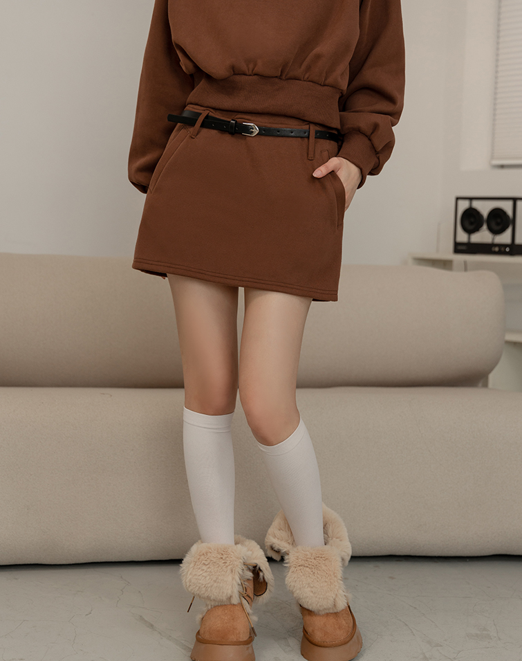 下身 附腰帶/兩側口袋/順身A字/內裏毛毛/可拆搭