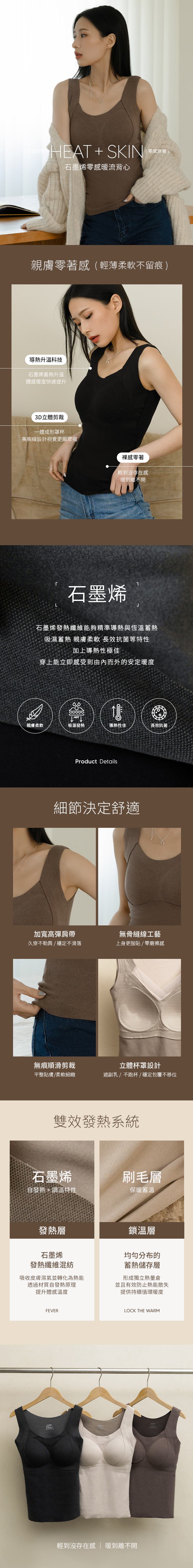 保暖石墨烯/胸墊不可拆/親膚柔軟