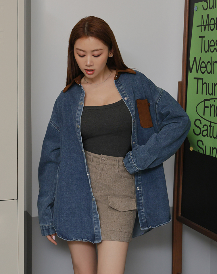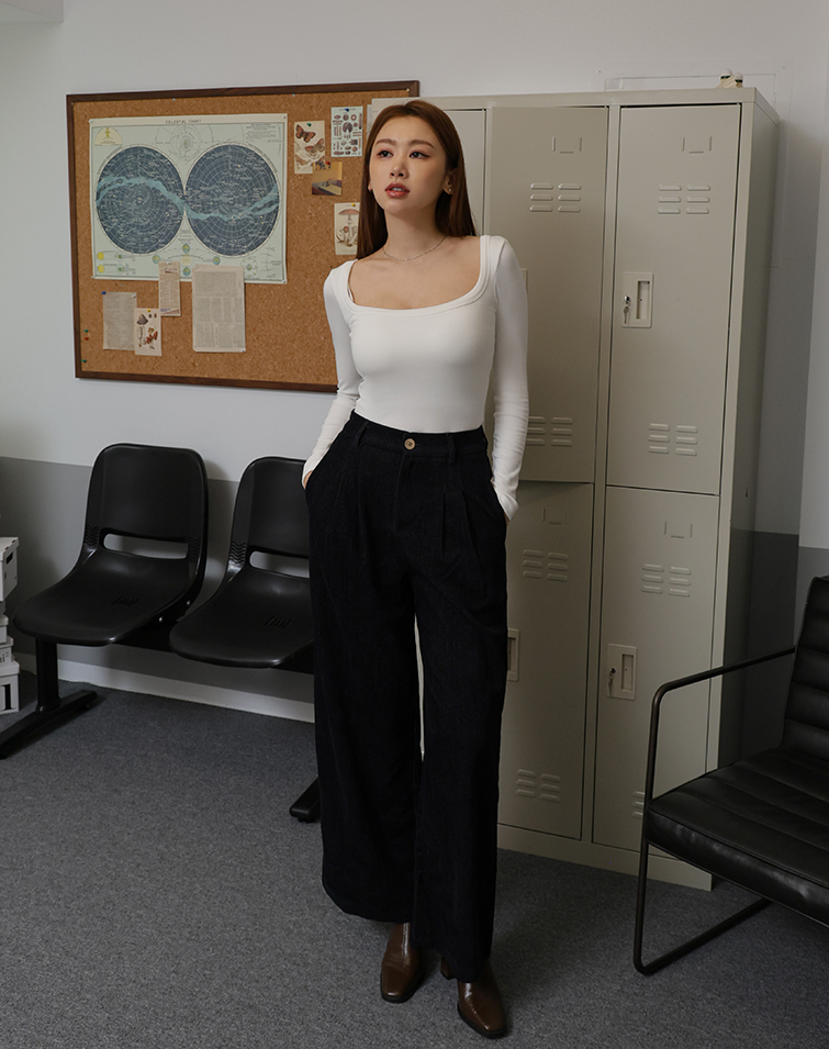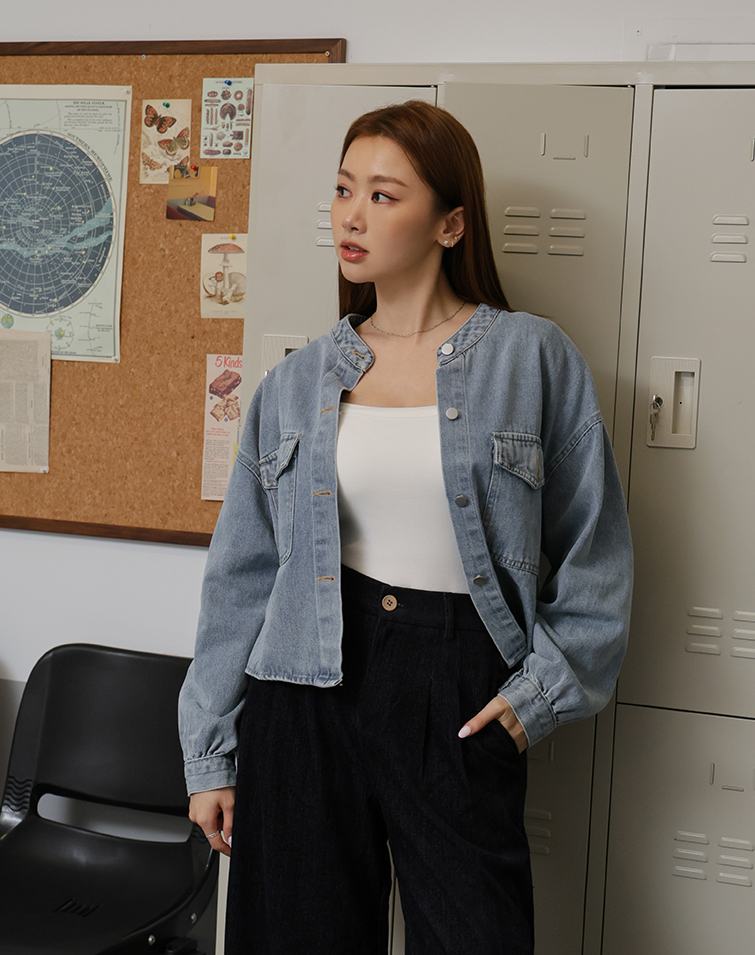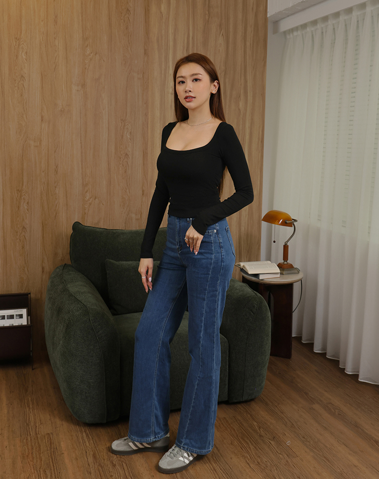 個性壓線喇叭丹寧長褲