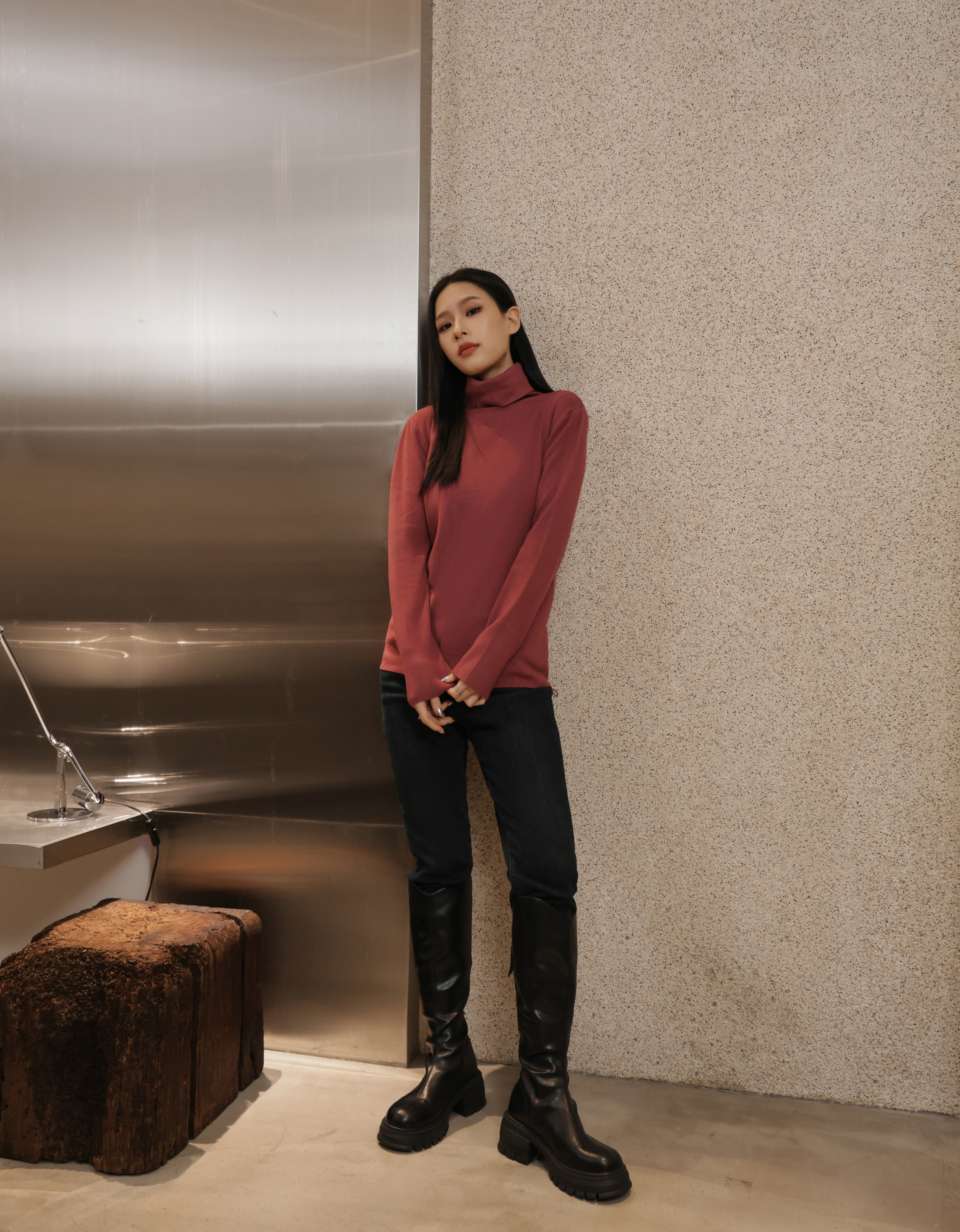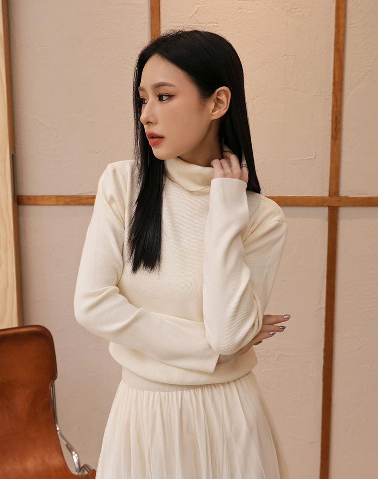 柔織高領細針織上衣