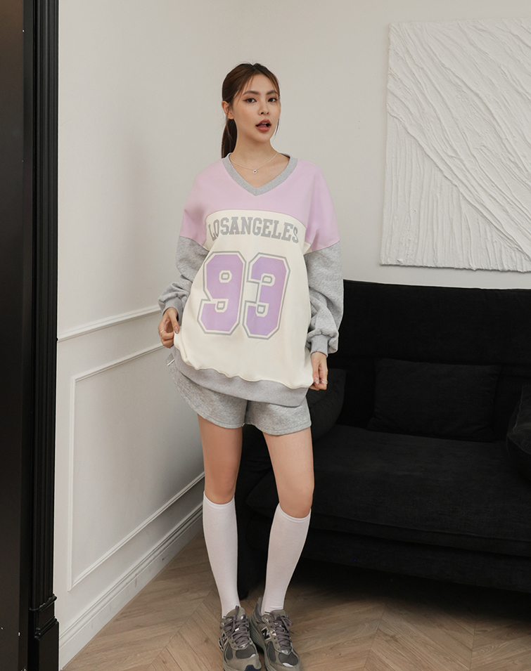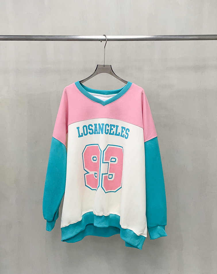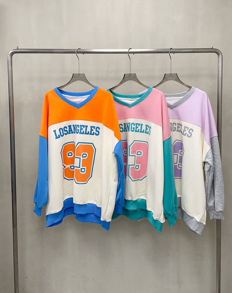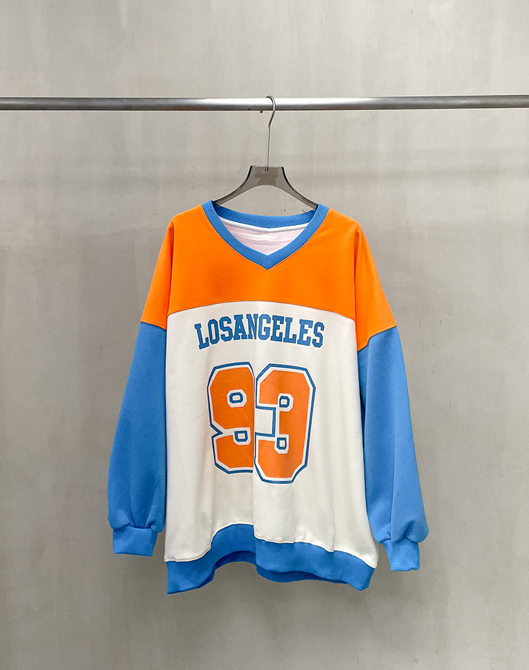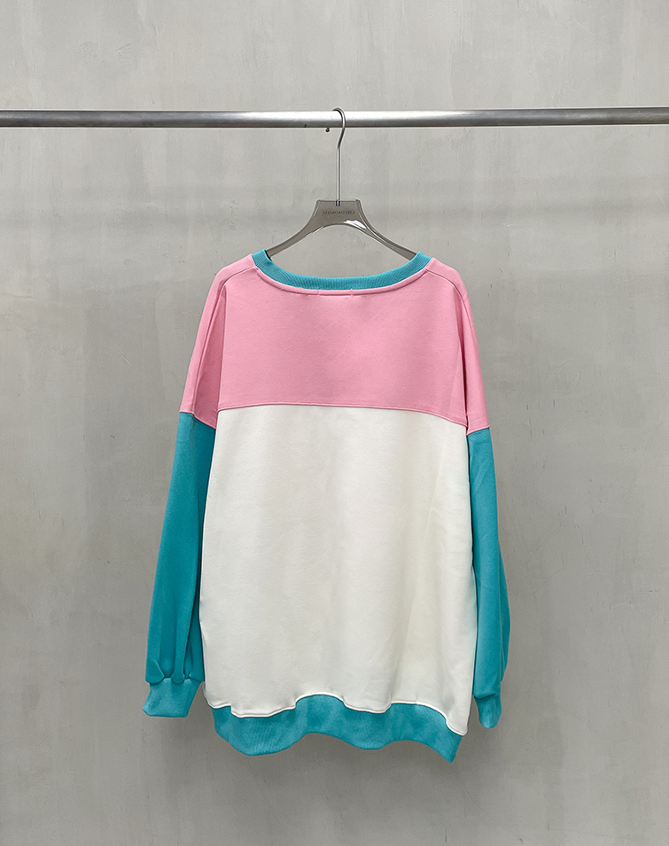 多巴胺V領撞色長袖上衣