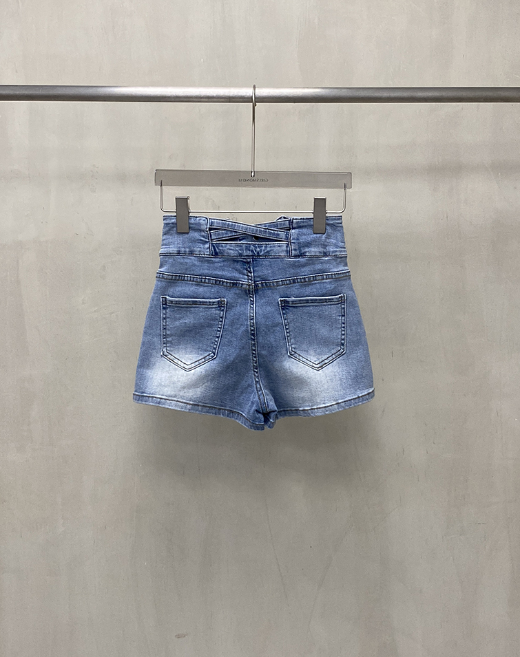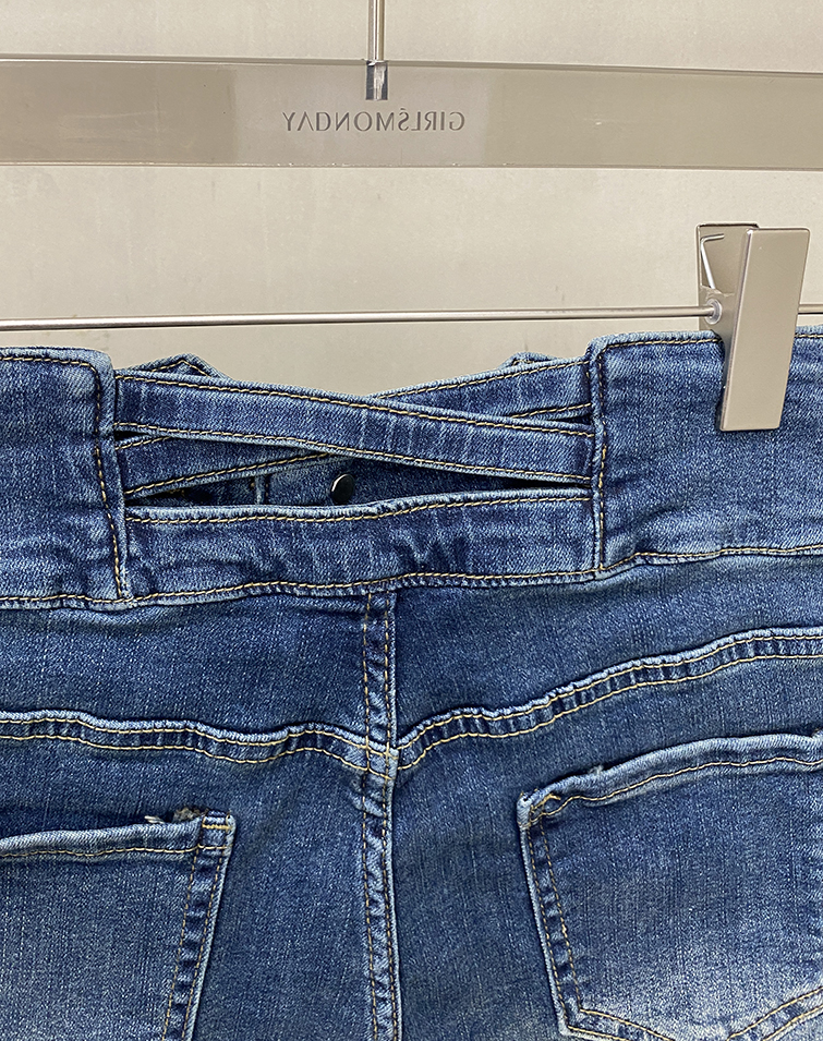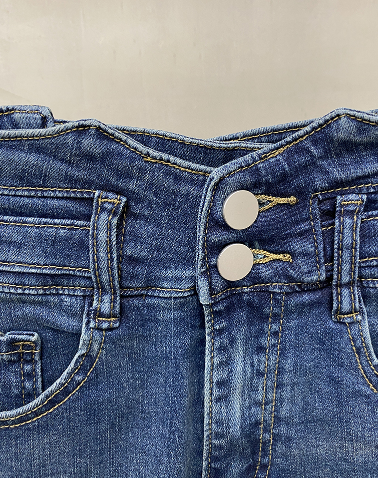 後腰簍空/雙釦收腰/前後口袋/A字顯瘦