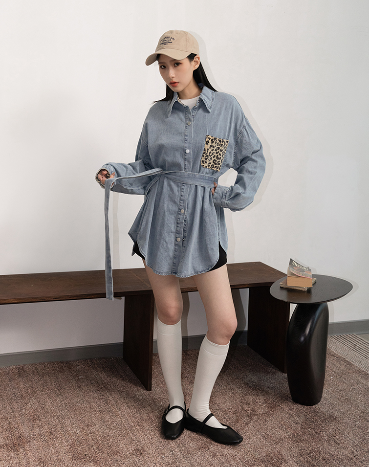 附腰帶/子母釦/單邊口袋/可兩穿