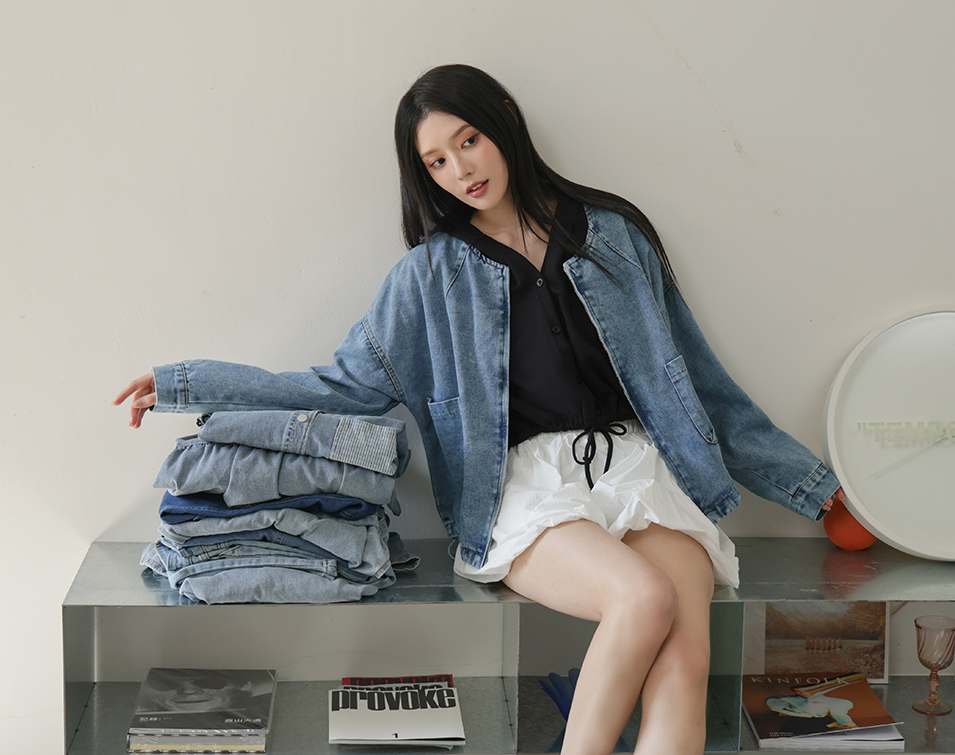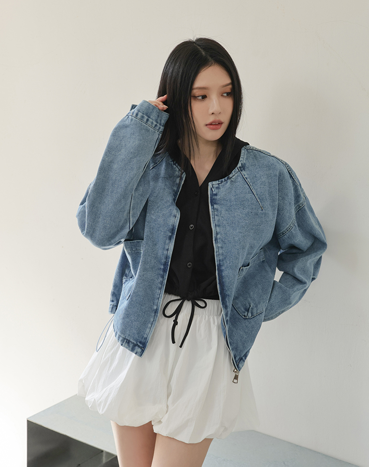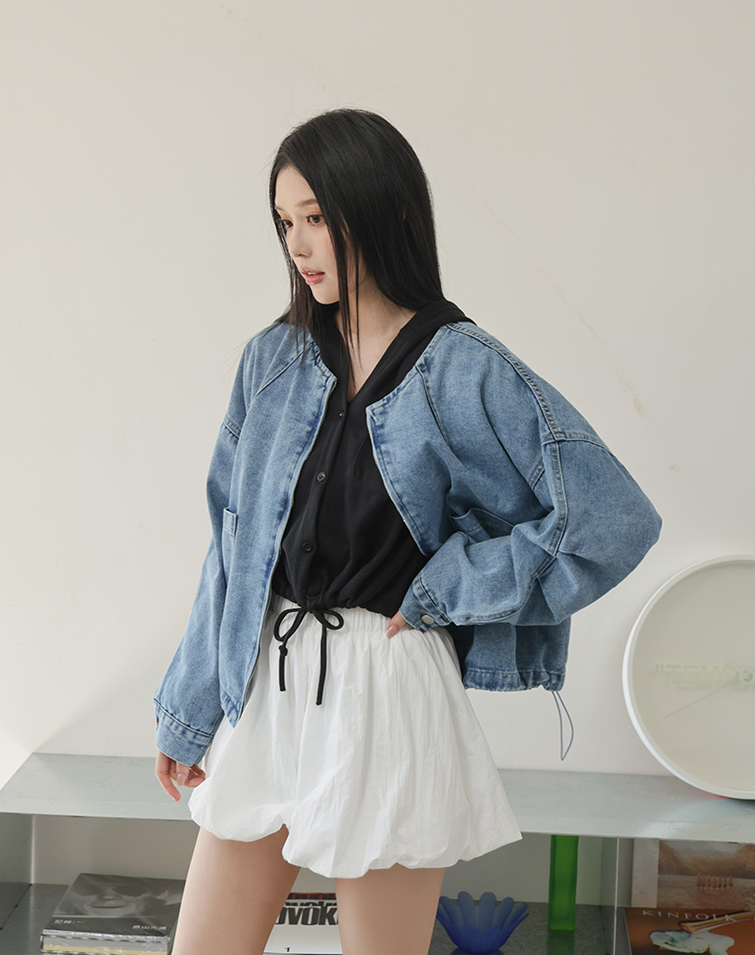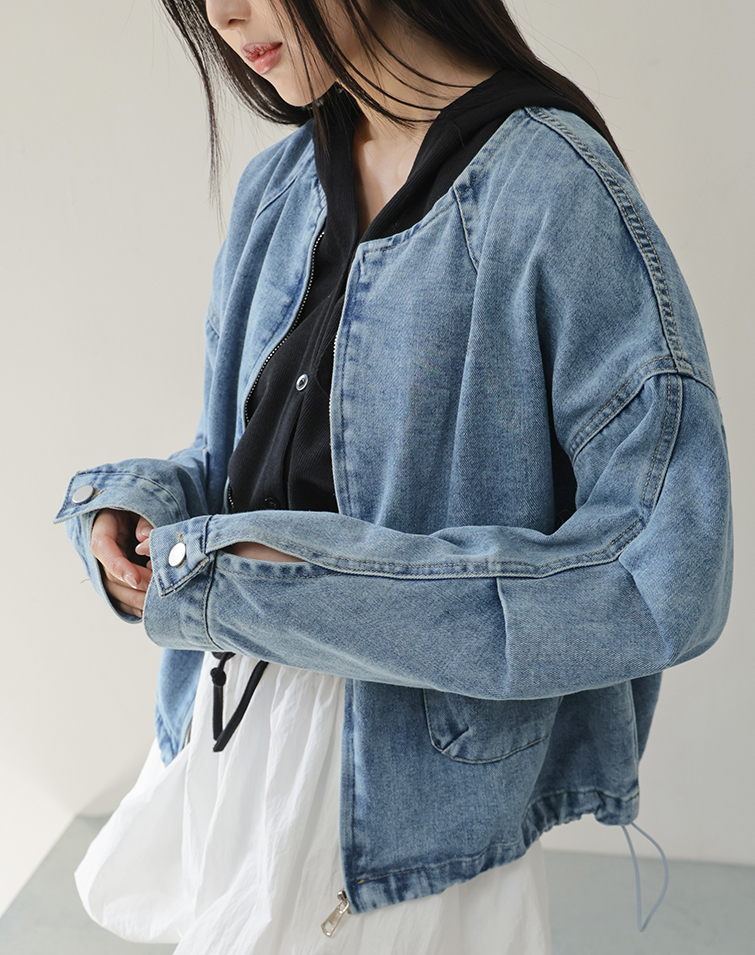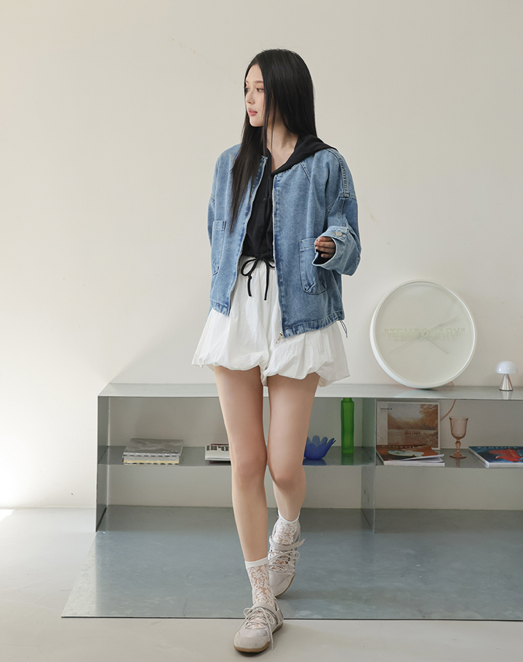 兩側口袋/下擺抽繩/軟料牛仔