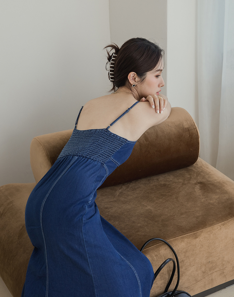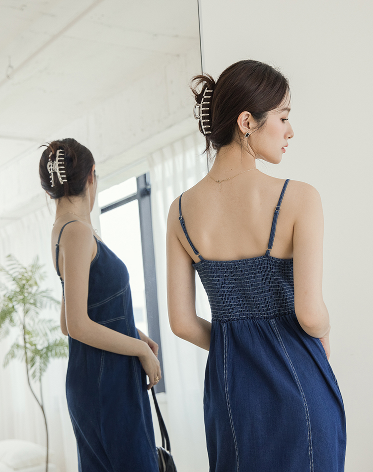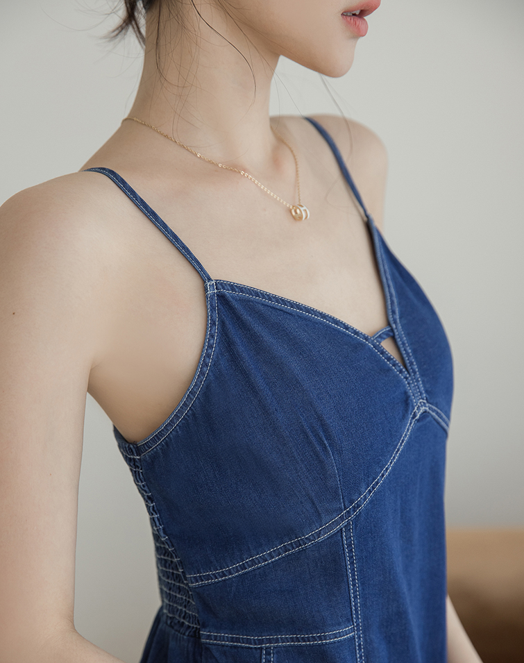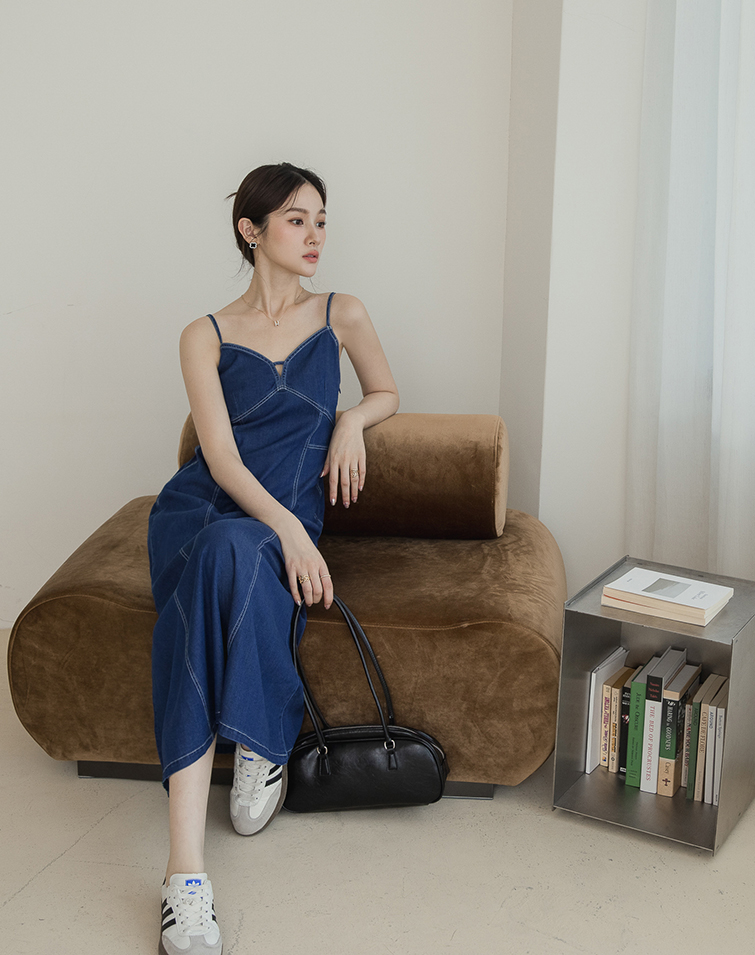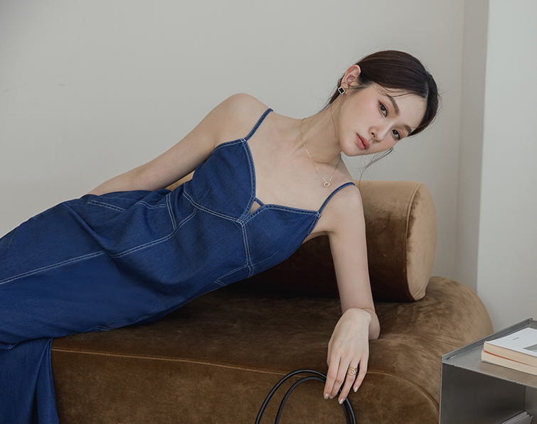 可調節肩帶/顯瘦車線設計/天絲牛仔面料