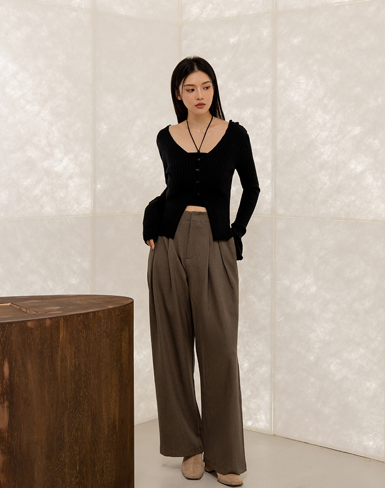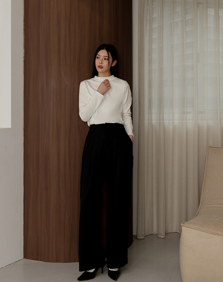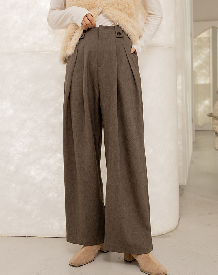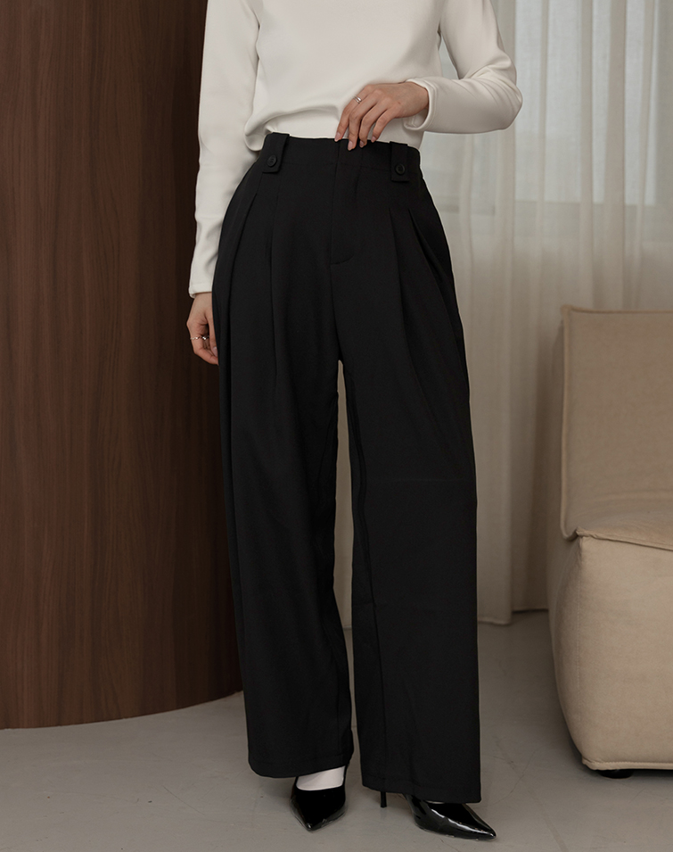 後腰鬆緊/兩側口袋/顯瘦壓褶