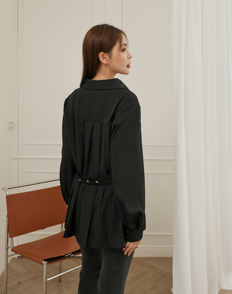 質感扁釦/後腰調節設計/顯瘦壓褶