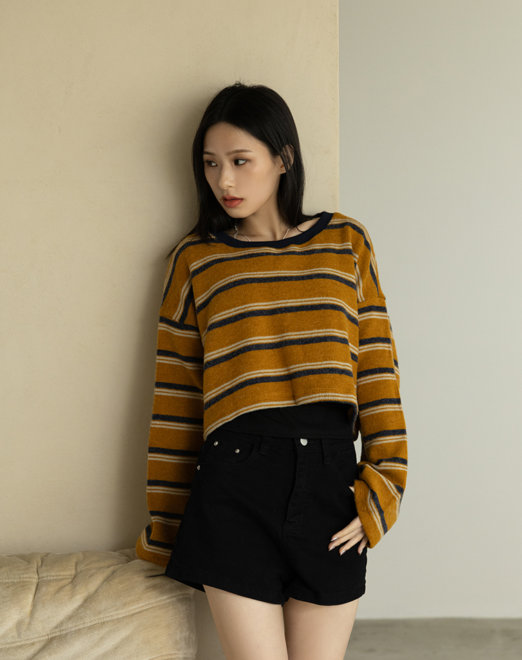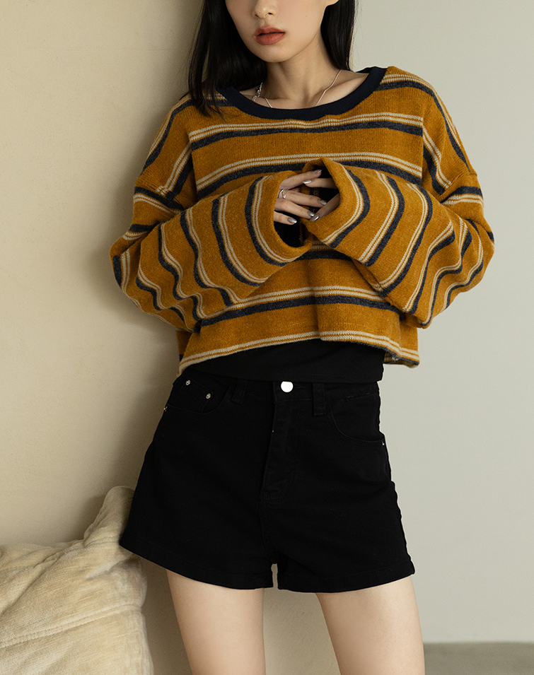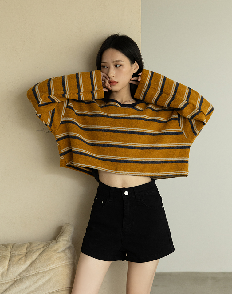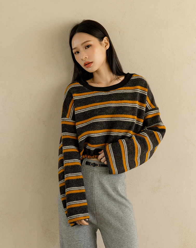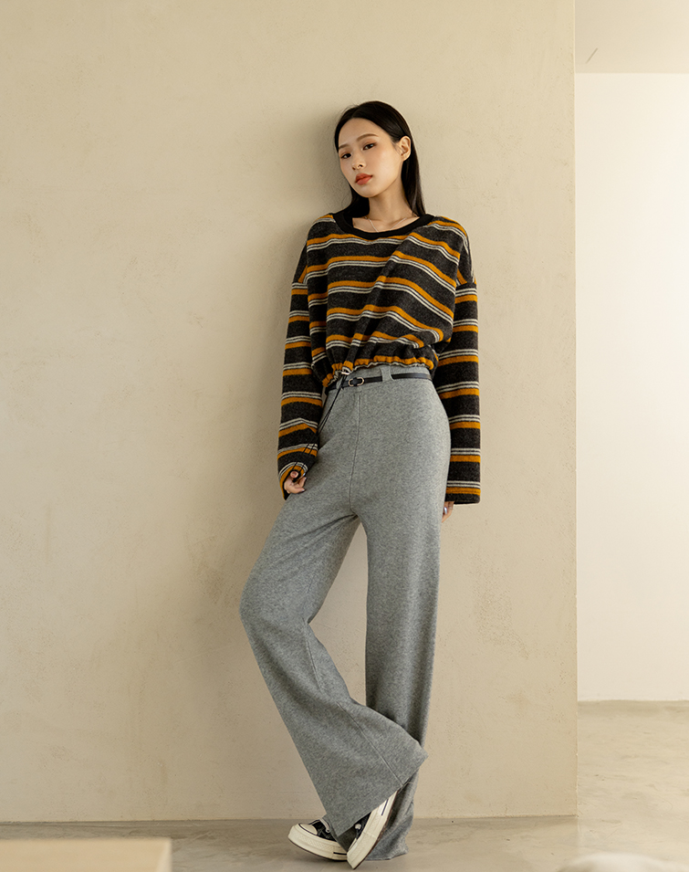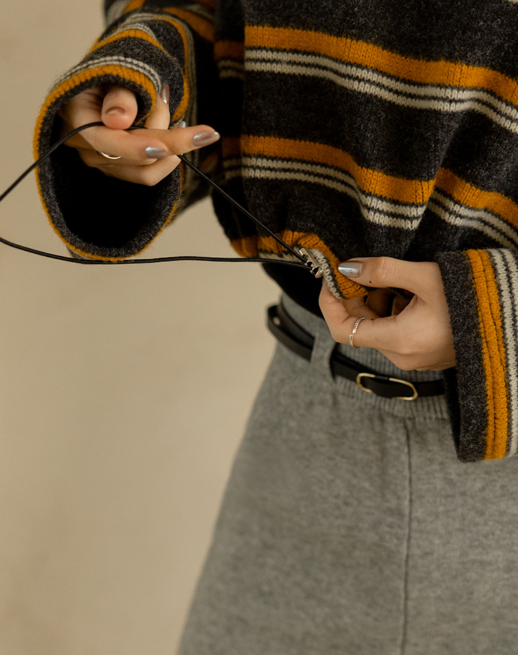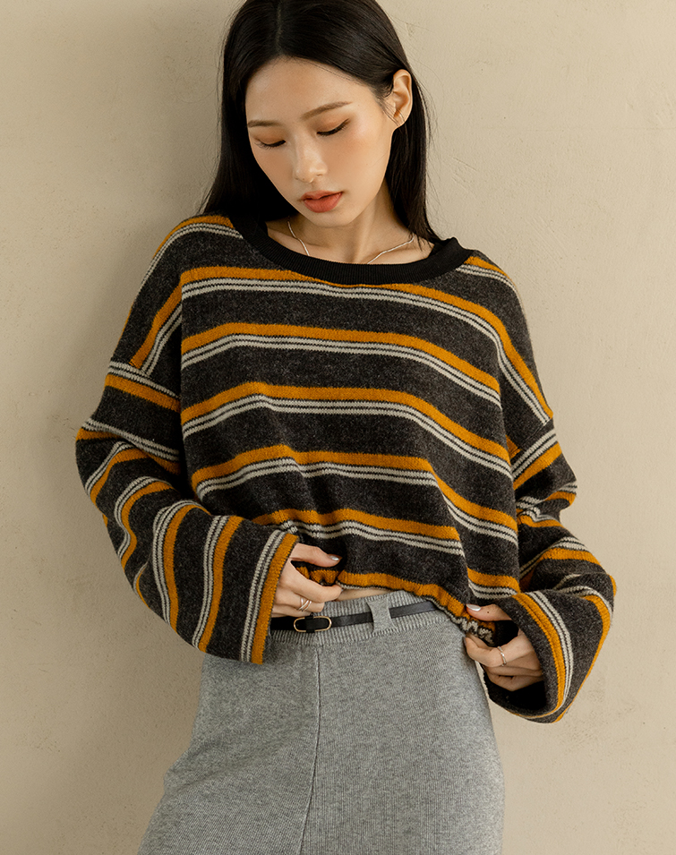 寬鬆藏肉/下襬單抽繩/基礎圓領
