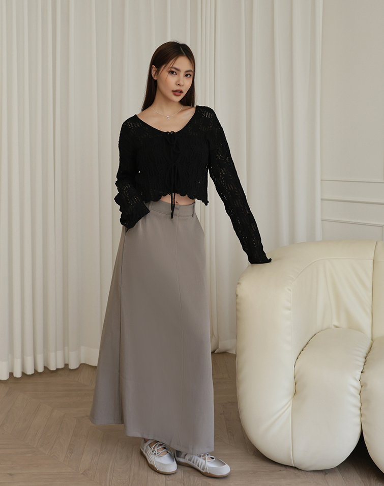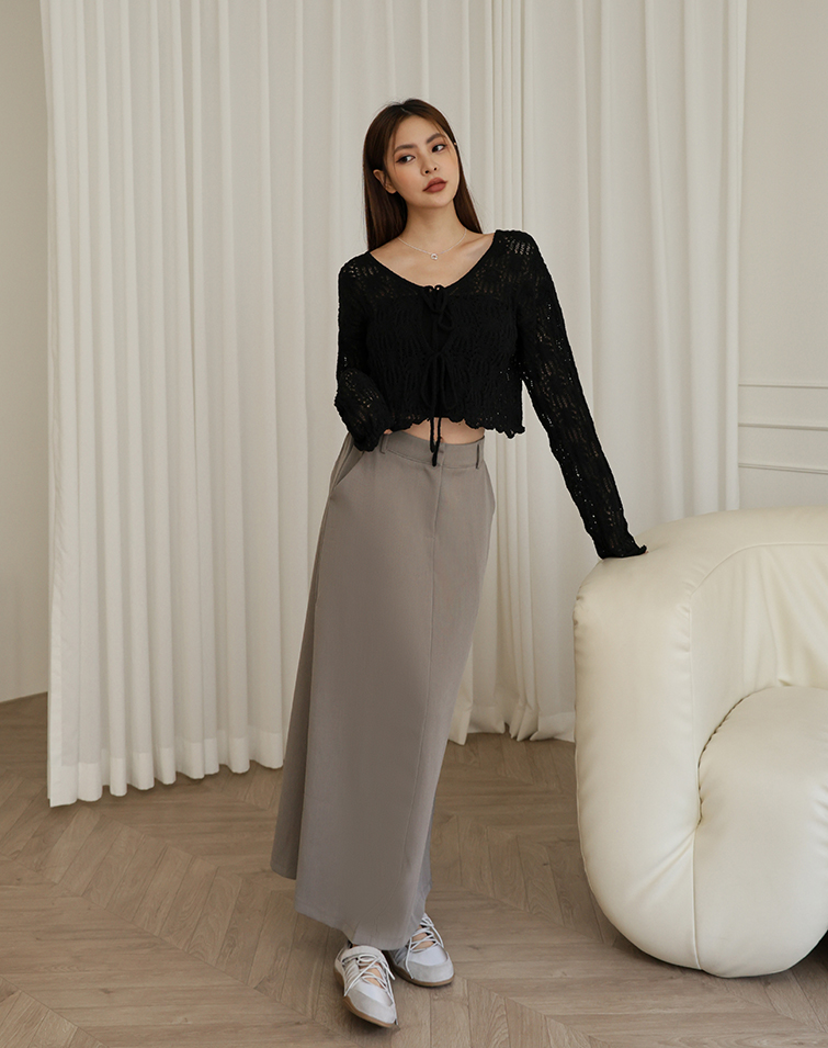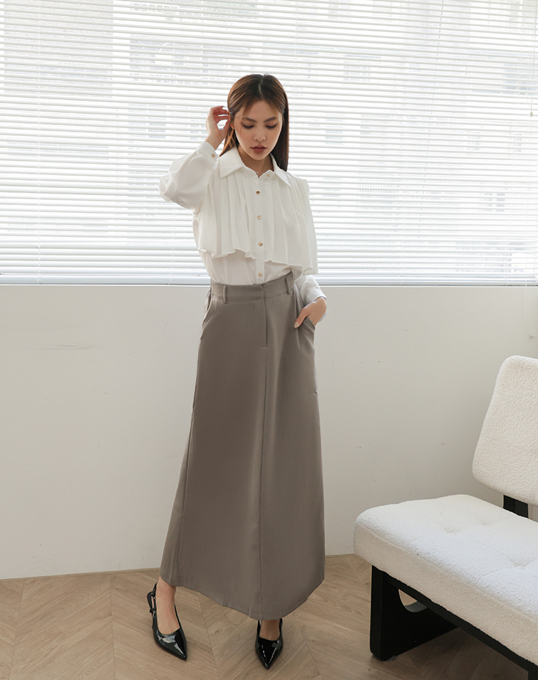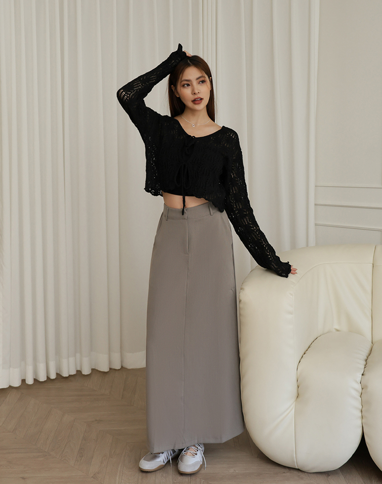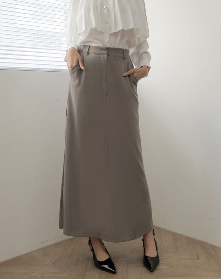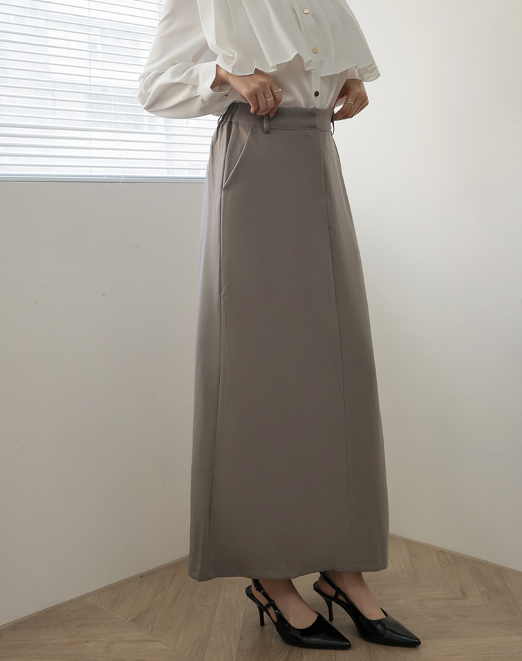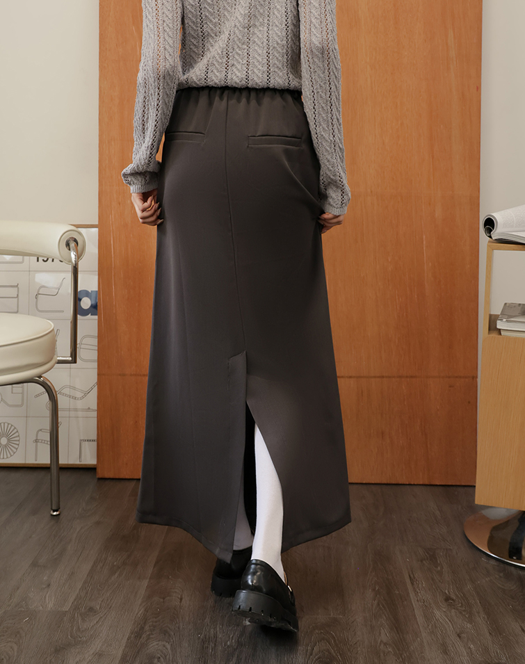 鉤釦/後腰鬆緊/兩側口袋/後開衩