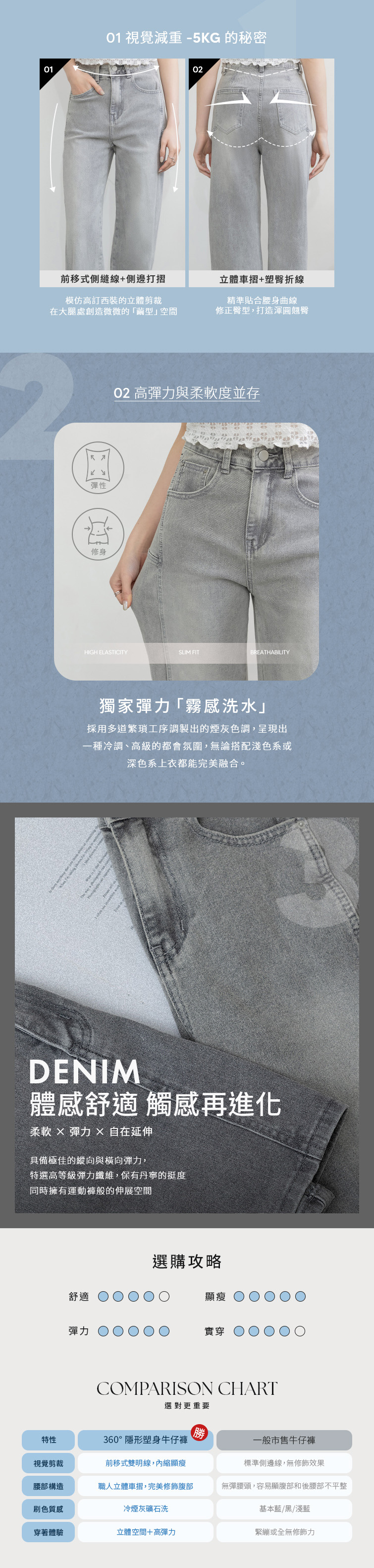 零死角修飾/前後口袋/軟料牛仔